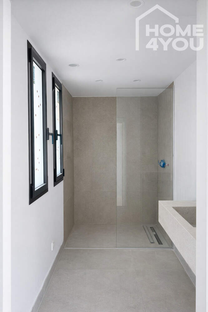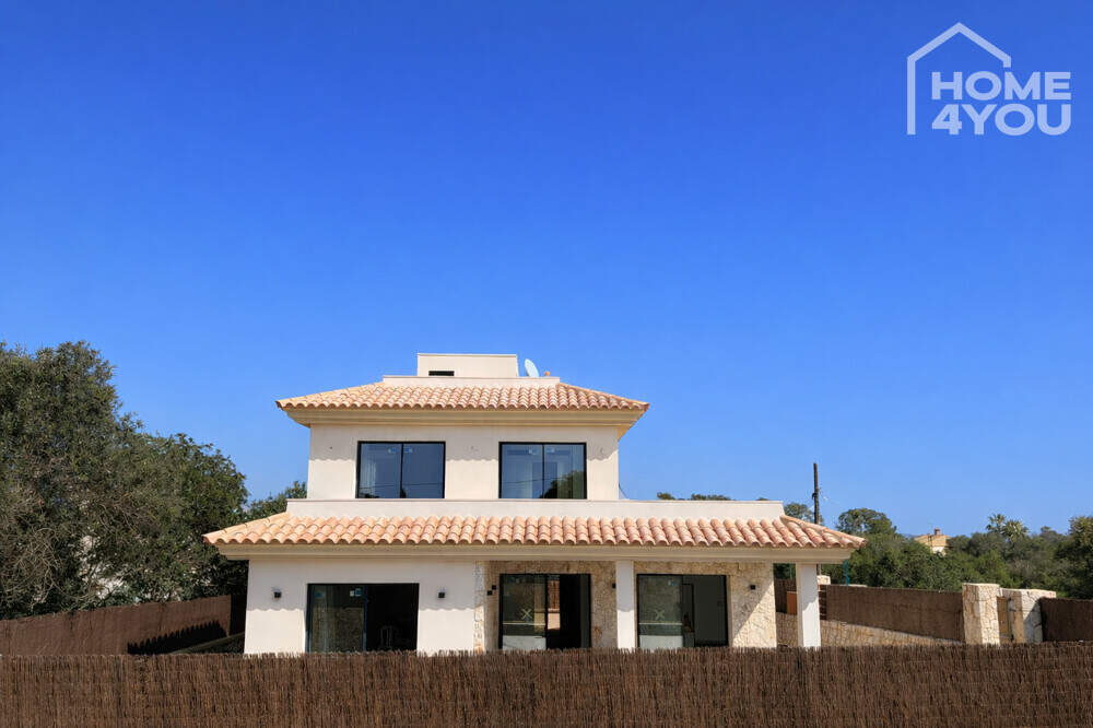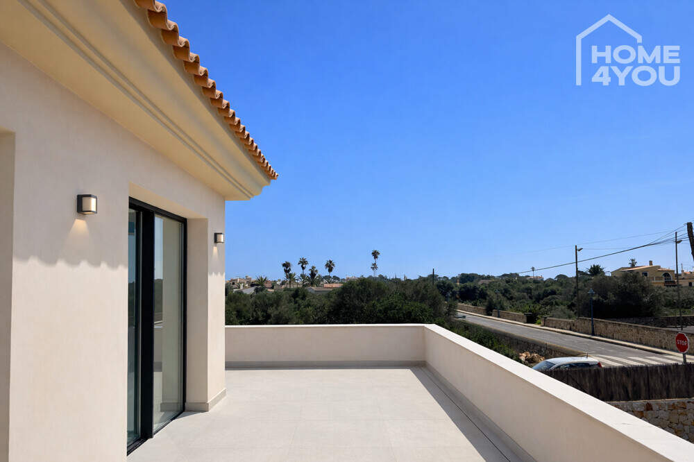 Ergänzt wird das Raumangebot durch einen funktionalen Maschinenraum mit Wärmepumpe sowie Anschlüssen für Waschmaschine und Trockner. Im Obergeschoss erwarten Sie zwei weitere Schlafzimmer, jeweils mit eigenem Bad und Zugang zum Balkon. Die Dachterrasse mit schönem Meerblick und weitem Blick über die Landschaft schafft einen ganz besonderen Ort zum Entspannen und Genießen.