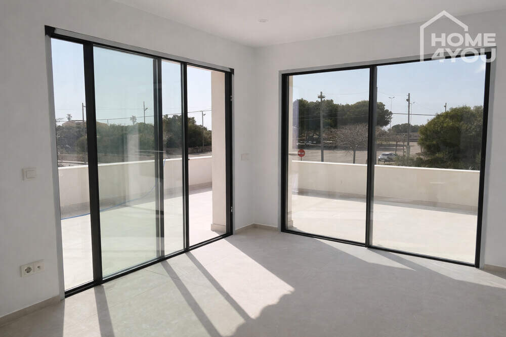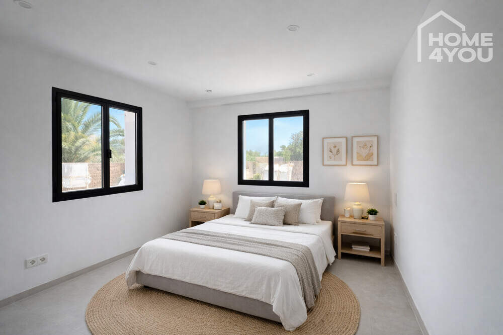 Auch die weiteren Außenflächen laden dazu ein, das mediterrane Klima in vollen Zügen zu erleben. Hochwertige Ausstattungsmerkmale wie Fußbodenheizung, Klimaanlage, doppelt verglaste Aluminiumfenster, weiße Einbauschränke, Videosprechanlage, Zusatzwassertank und ein privater Stellplatz unterstreichen den gehobenen Wohnkomfort.