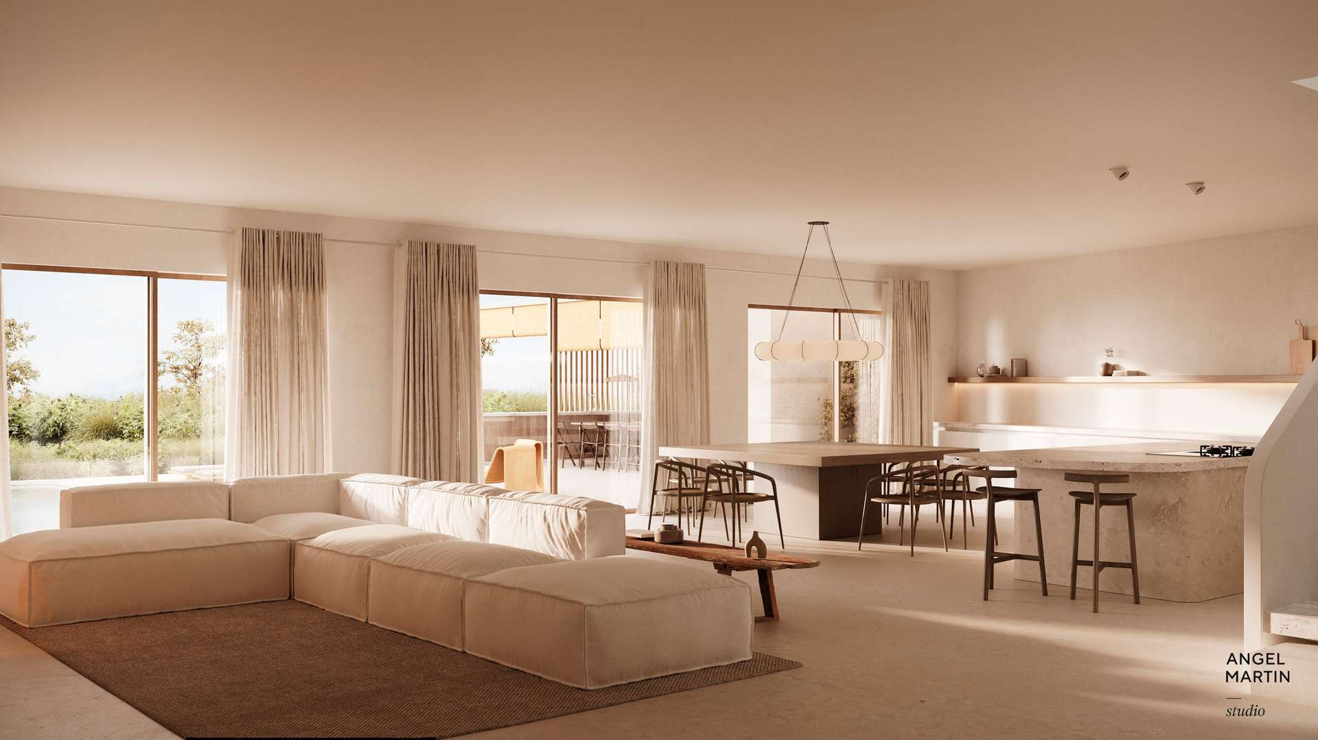 Das Haus wurde mit erstklassigen Materialien und edlen Naturfarben gestaltet. Großzügige Fensterflächen sorgen für lichtdurchflutete Räume, während hochwertige Materialien wie Zementböden, Sandsteinoptik-Wände und Eichenholzelemente ein elegantes Ambiente schaffen. Fußbodenheizung & Klimaanlage sorgen das ganze Jahr über für höchsten Wohnkomfort. Die modernen Holzmöbel & stilvolle Beleuchtung sind im Kaufpreis enthalten und können auf Wunsch individuell angepasst werden.
