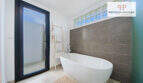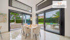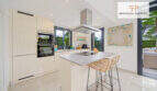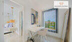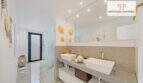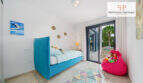 Im Obergeschoss erwartet Sie ein heller Flurbereich, der ausreichend Platz für einen Arbeitsbereich bietet. Das Hauptschlafzimmer verfügt über ein en-suite Bad mit Badewanne und Außendusche sowie einen Balkon mit Blick auf Garten und Pool. Alle Schlafzimmer sind mit maßgefertigten Einbauschränken ausgestattet, die viel Stauraum bieten.