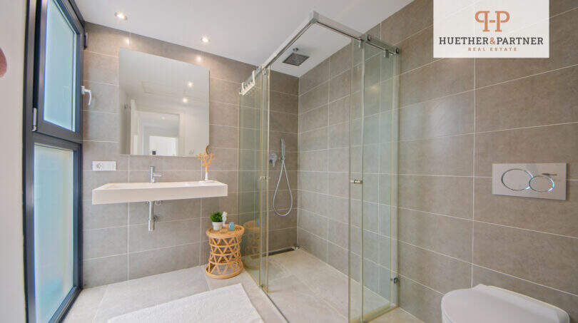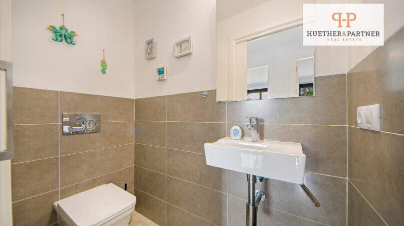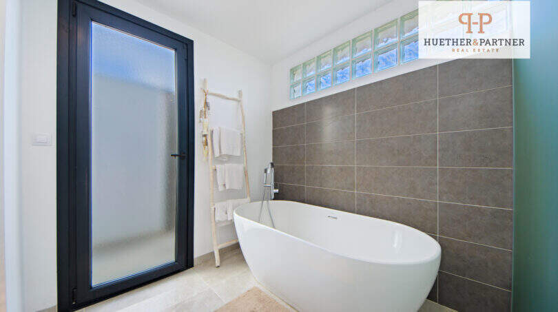 Zu den technischen Highlights gehören ein Wasserenthärter, ein Glasfaseranschluss für schnelles Internet sowie eine hochwertige deutsche Alarmanlage von Telenot, die ein hohes Maß an Sicherheit bietet. Die gesamte Immobilie zeichnet sich durch Fußbodenheizung in allen bewohnten Räumen sowie eine unsichtbar integrierte Klimaanlage mit drei zentralen Fancoils aus, die auf Kalt- und Warmwasserbasis arbeiten und ganzjährig ein ideales Raumklima gewährleisten. Die Wärme- und Kälteversorgung erfolgt über eine Daikin-Wärmepumpe aus dem Jahr 2023 in Kombination mit einem 200-Liter-Warmwasserboiler desselben Jahres, was die Immobilie besonders energieeffizient macht.