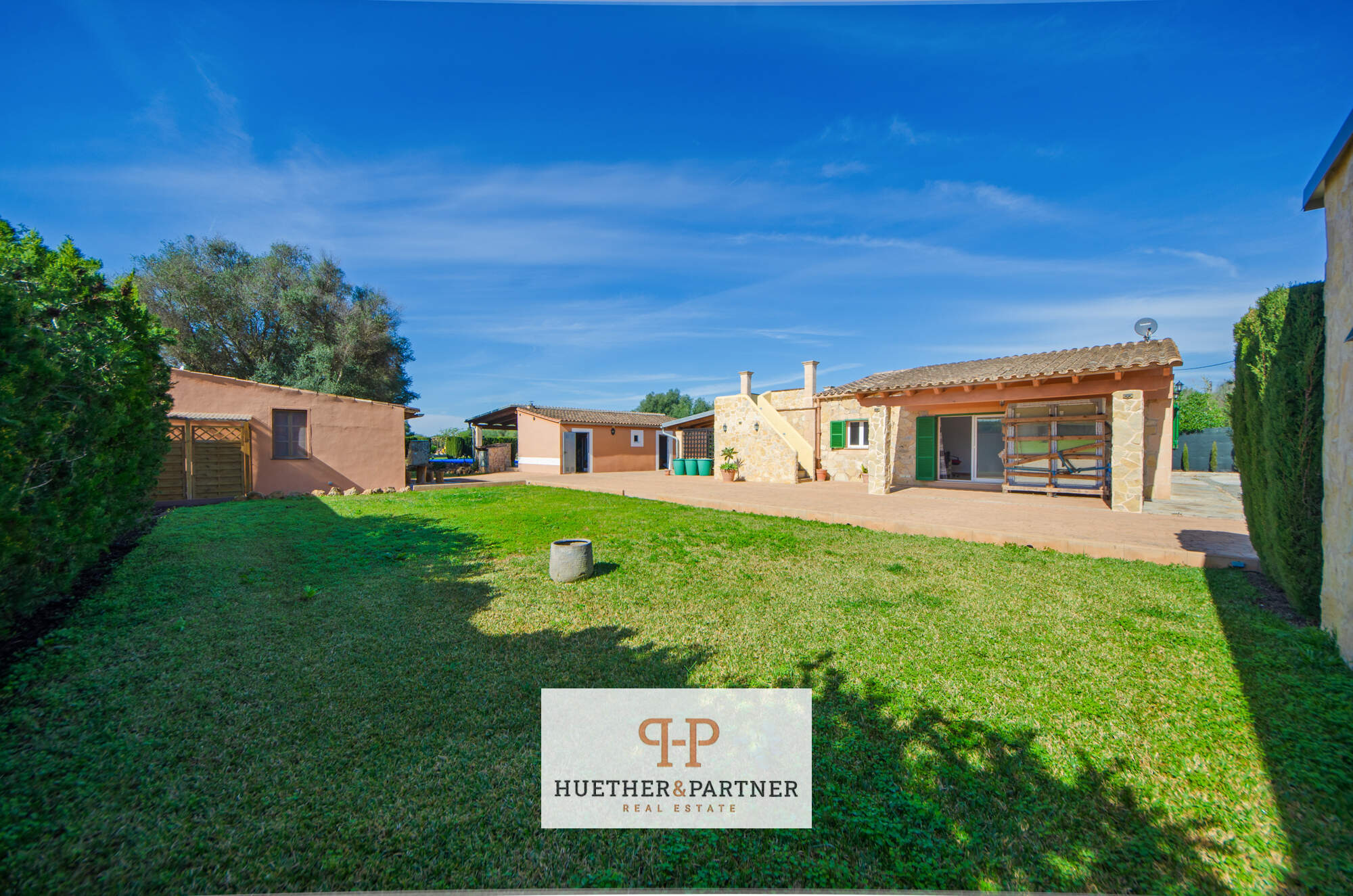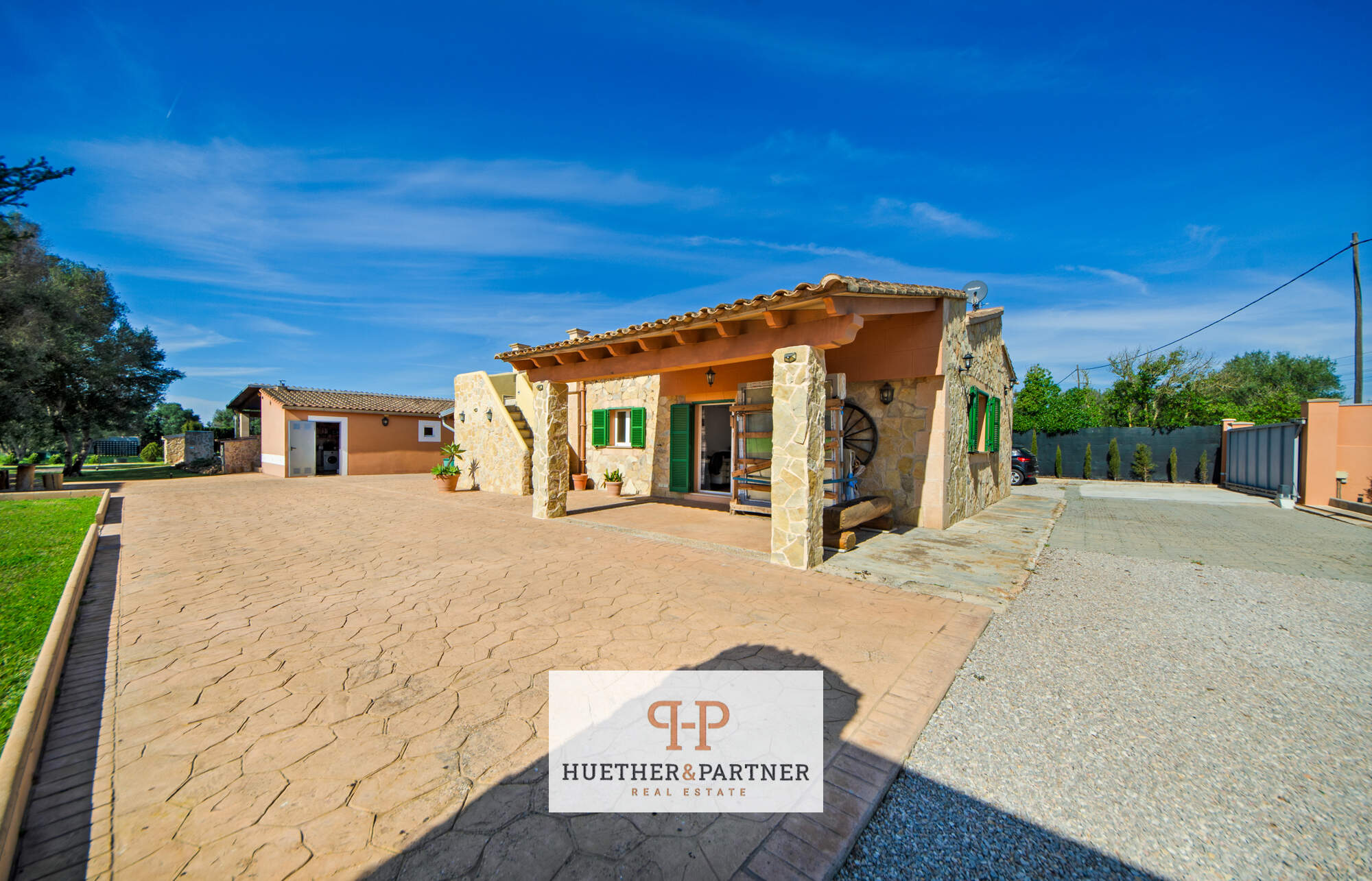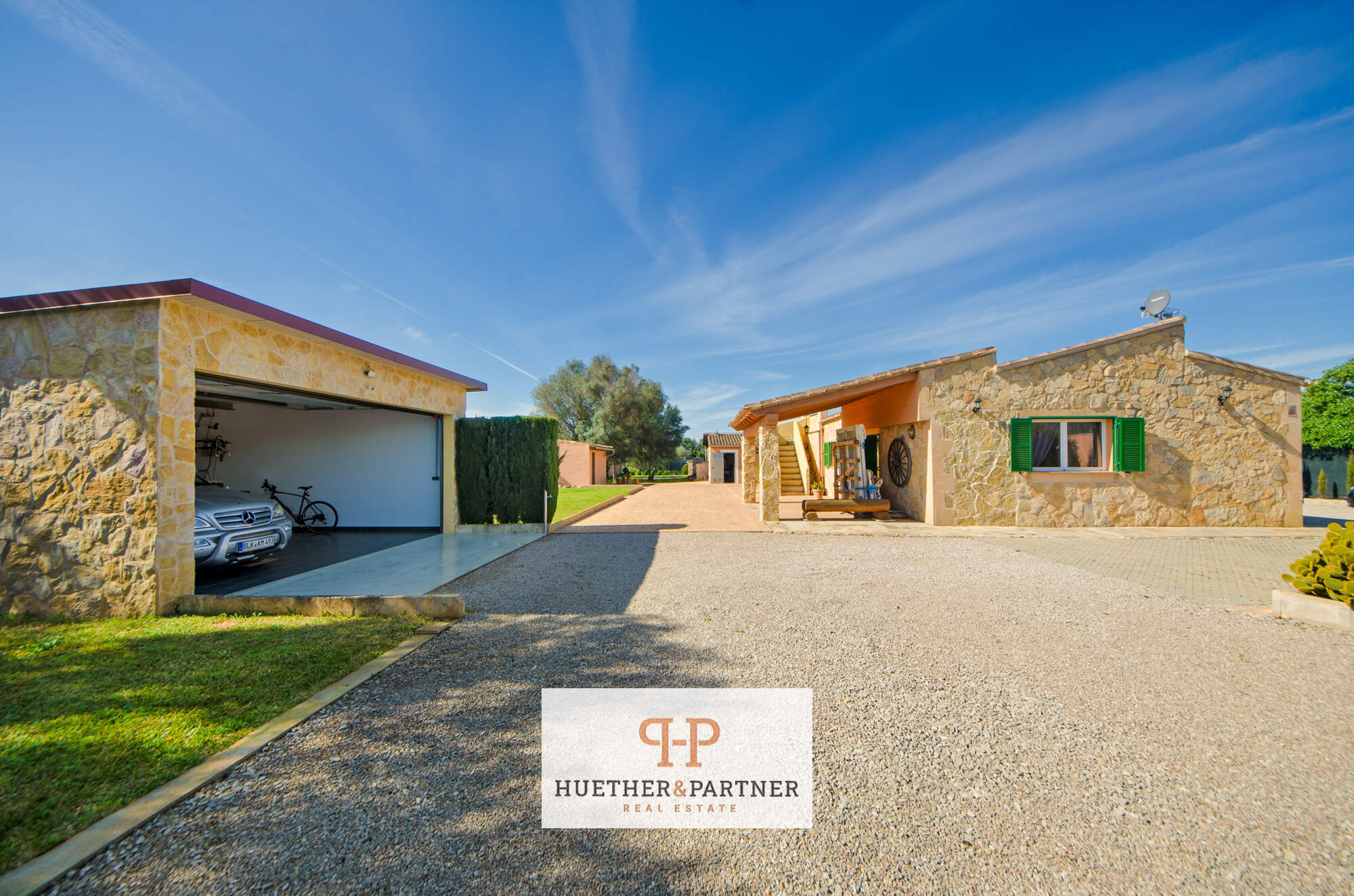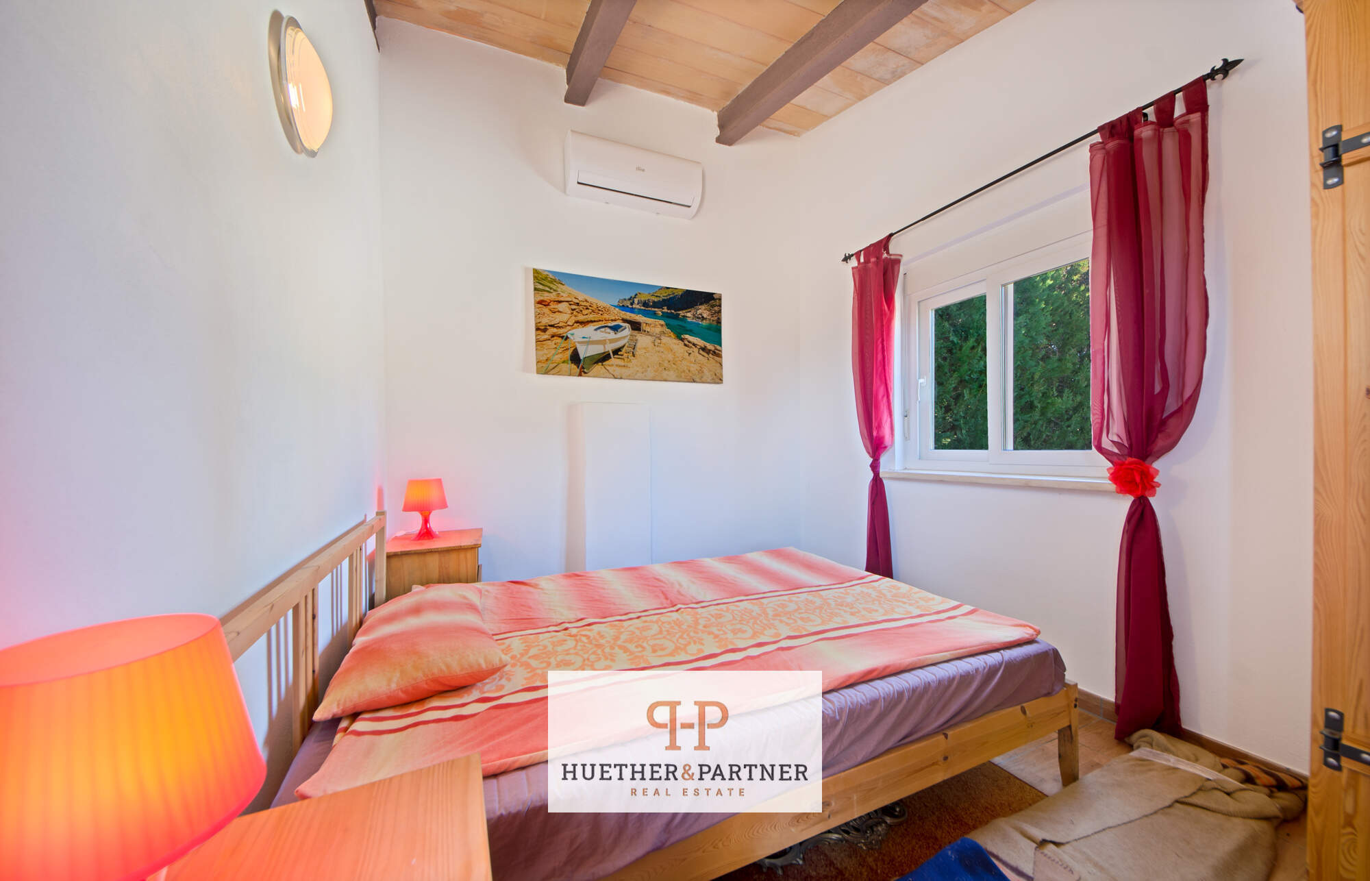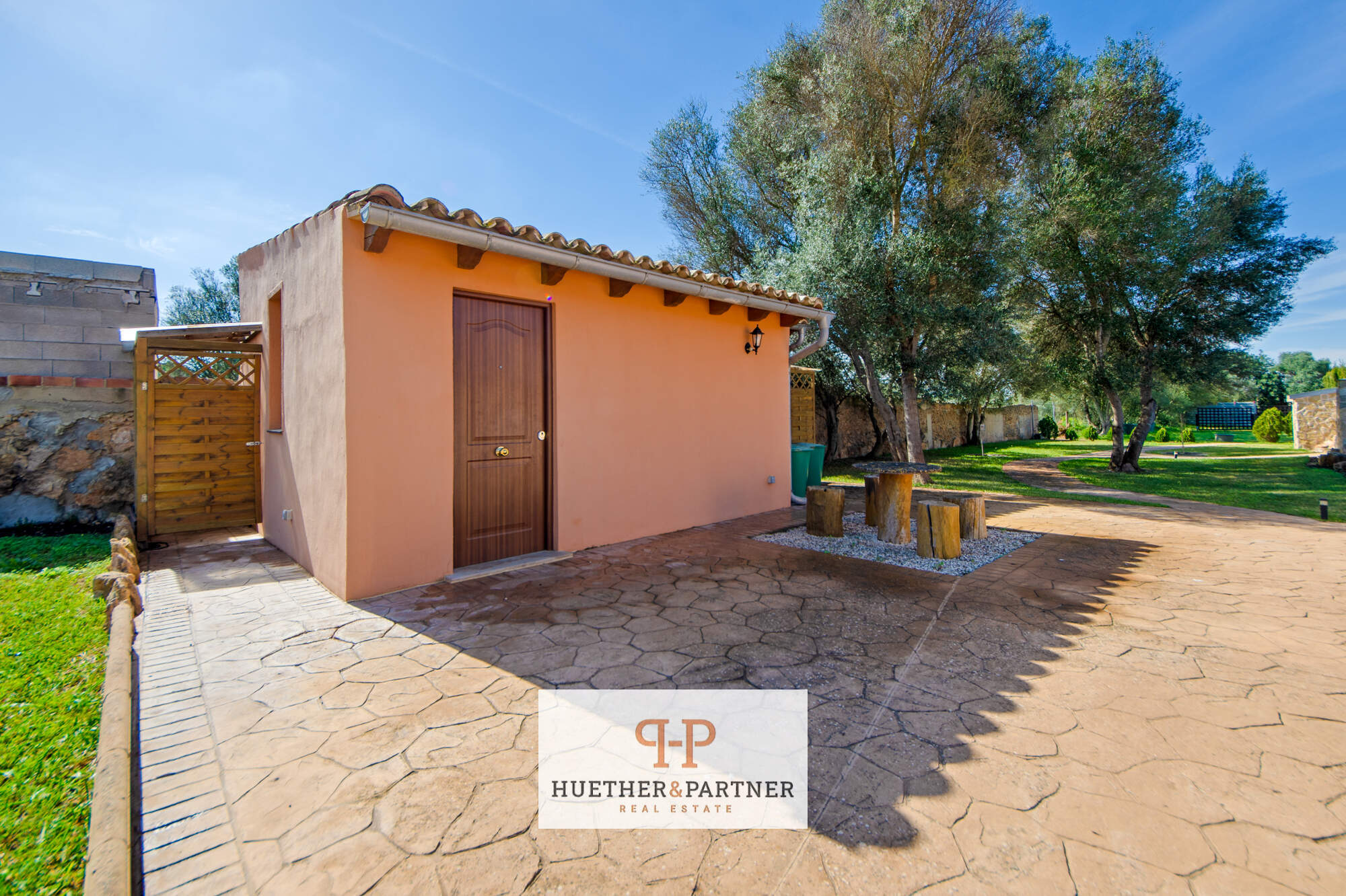 Llucmajor / Mallorcas SüdenFinca kaufen in Llucmajor, Gästehaus und Pool: Im Haupthaus befinden sich zwei Schlafzimmer, von denen eines über ein eigenes Ankleidezimmer verfügt. Ergänzt wird der Wohnbereich durch ein Badezimmer, einen Essbereich sowie ein gemütliches Wohnzimmer, das eine angenehme und einladende Wohnatmosphäre schafft. Die Küche ist vollständig ausgestattet und funktional gestaltet. Für ganzjährigen Wohnkomfort sorgen eine Ölheizung sowie eine Klimaanlage.