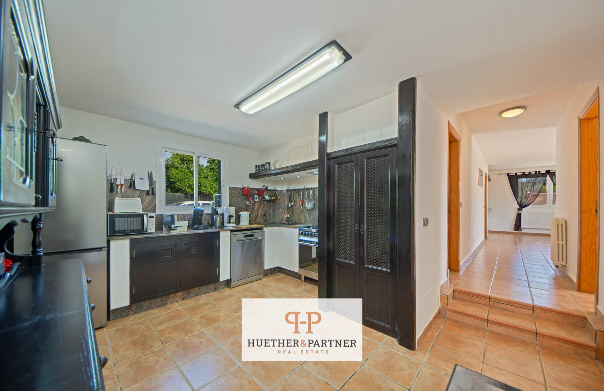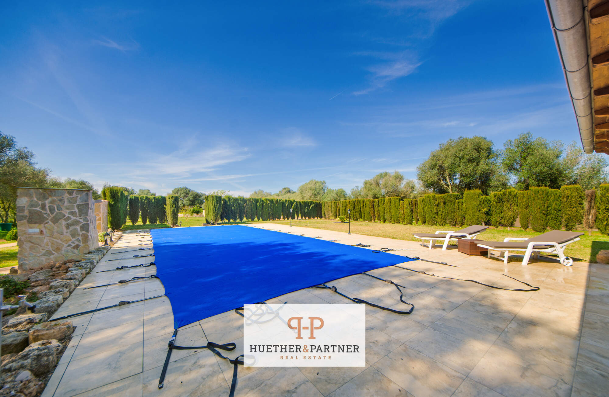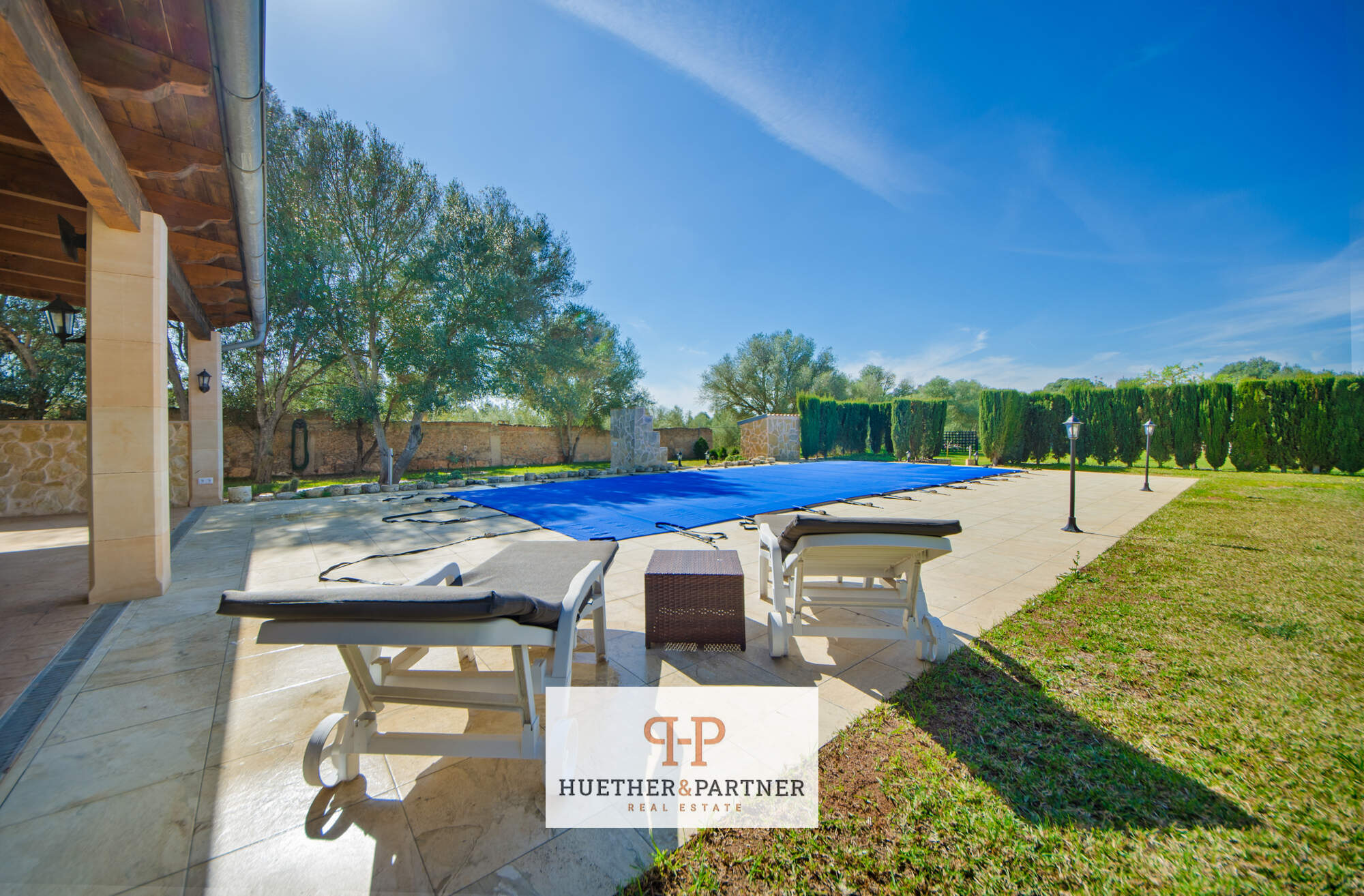Der Außenbereich der Finca lädt durch einen Salzwasserpool, großzügige Terrassenflächen und überdachte Veranden zum Entspannen ein. Hier lassen sich sowohl ruhige Stunden als auch gesellige Treffen im Freien genießen. Zusätzlich steht eine geräumige Sommerküche mit Grillbereich zur Verfügung – ideal für gemeinsame Mahlzeiten, Feiern oder Veranstaltungen unter freiem Himmel.