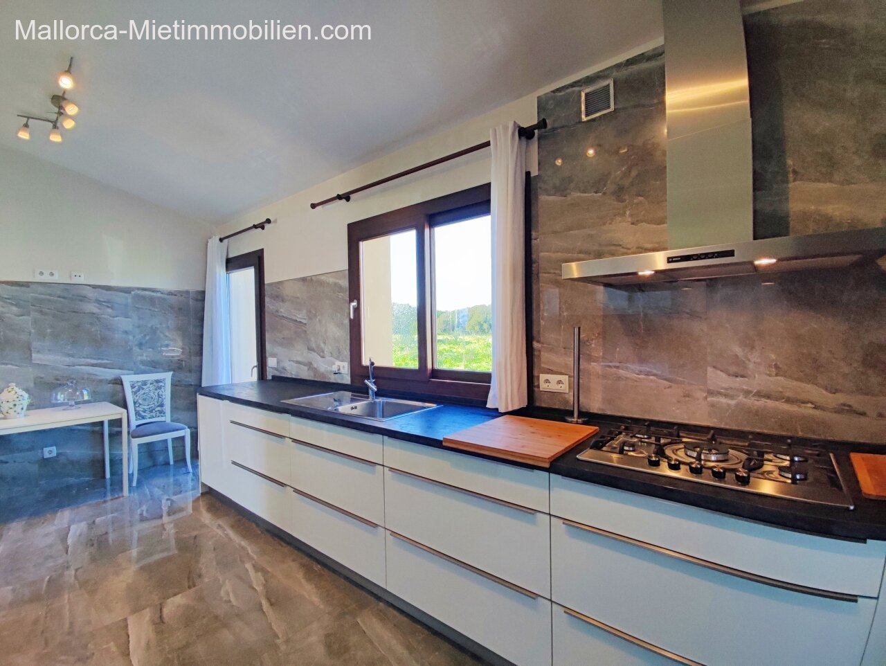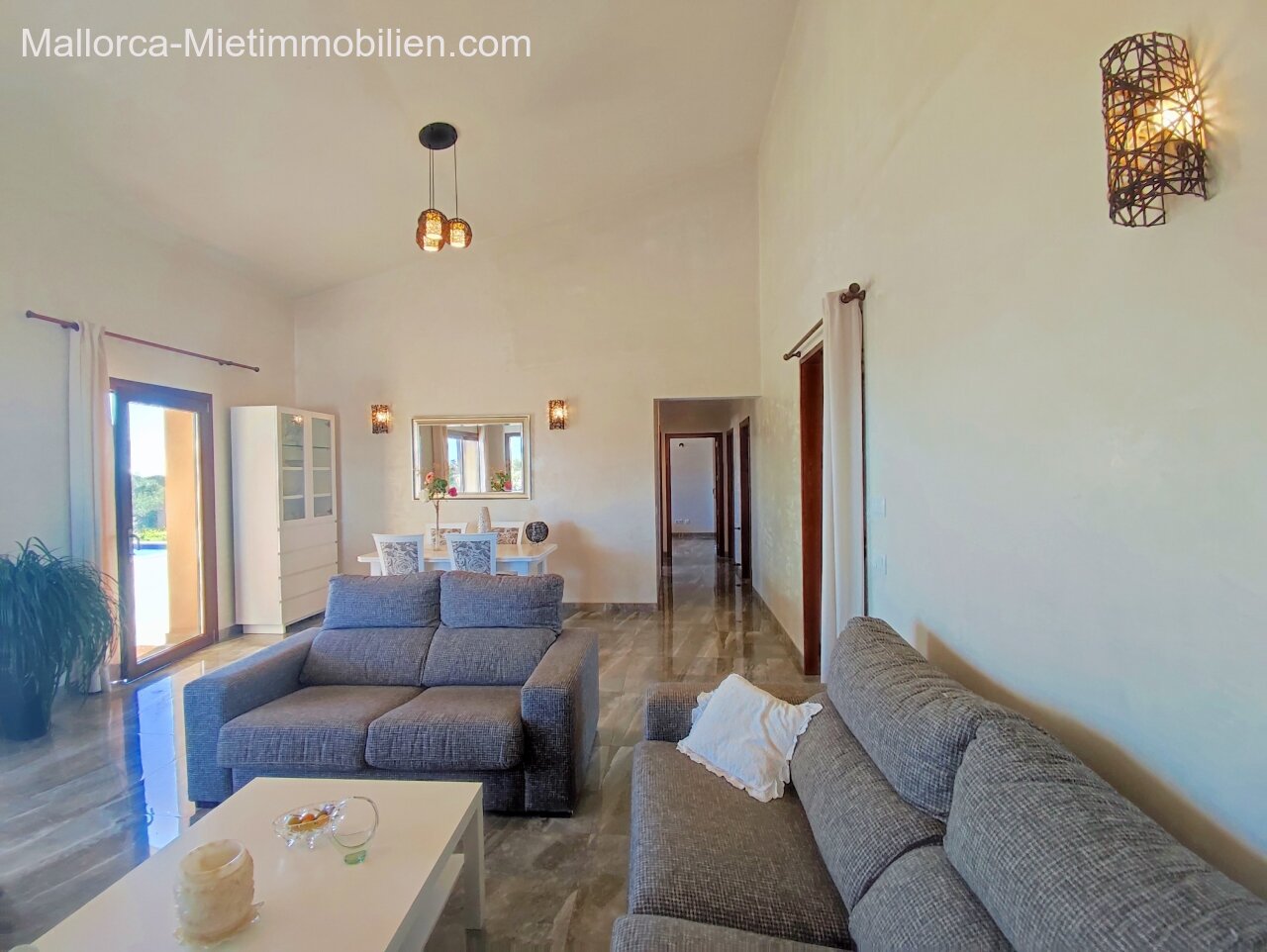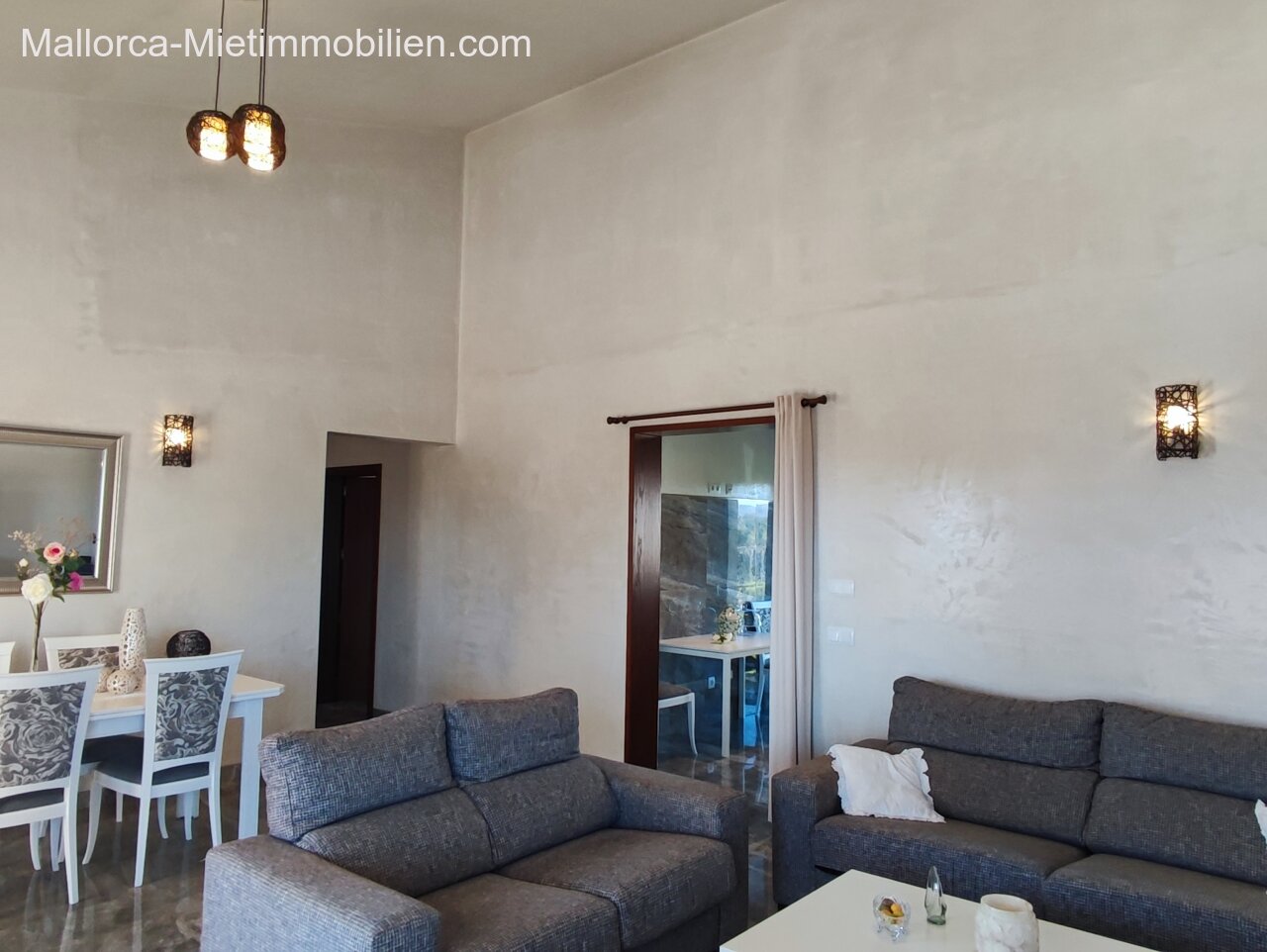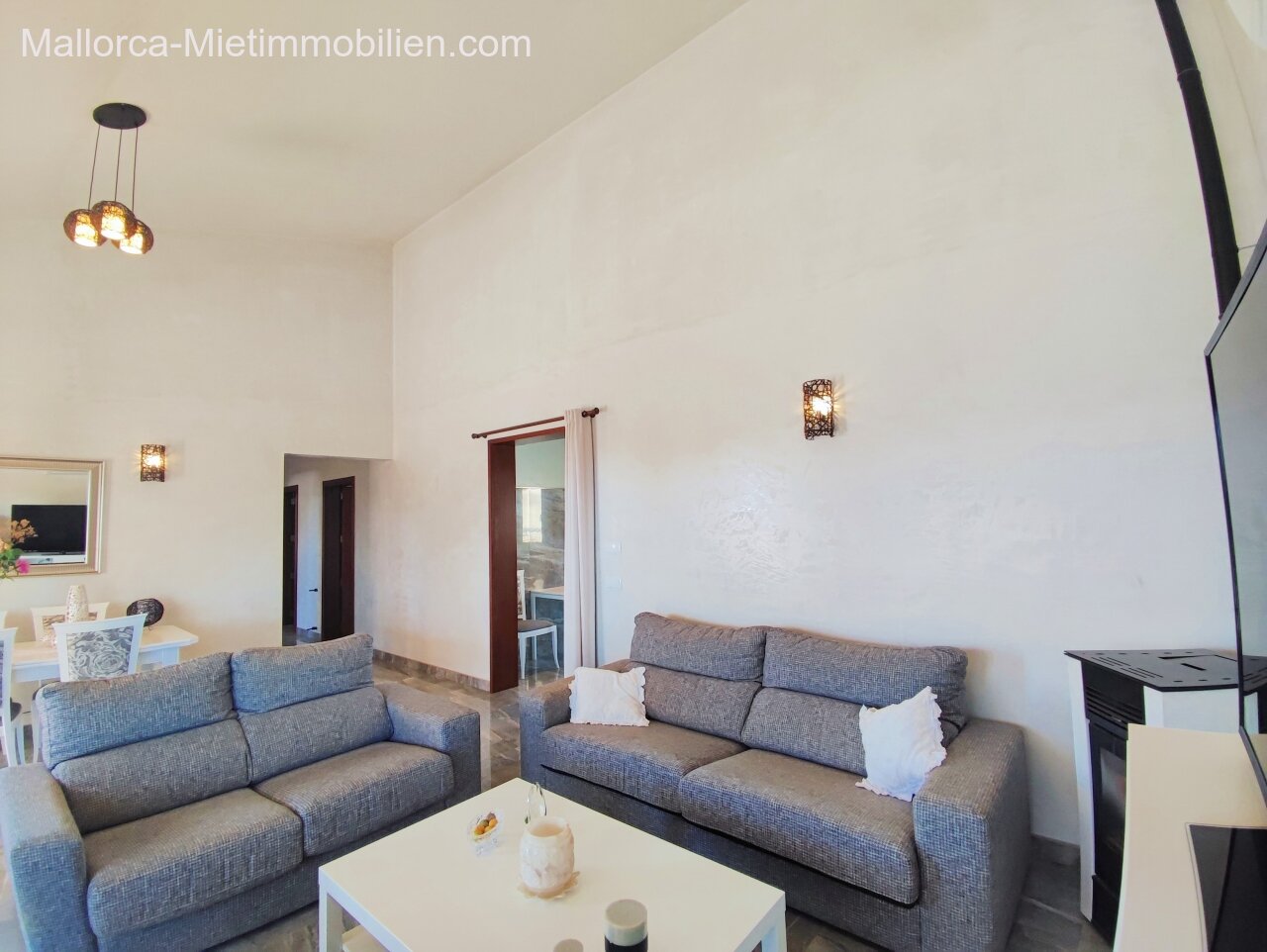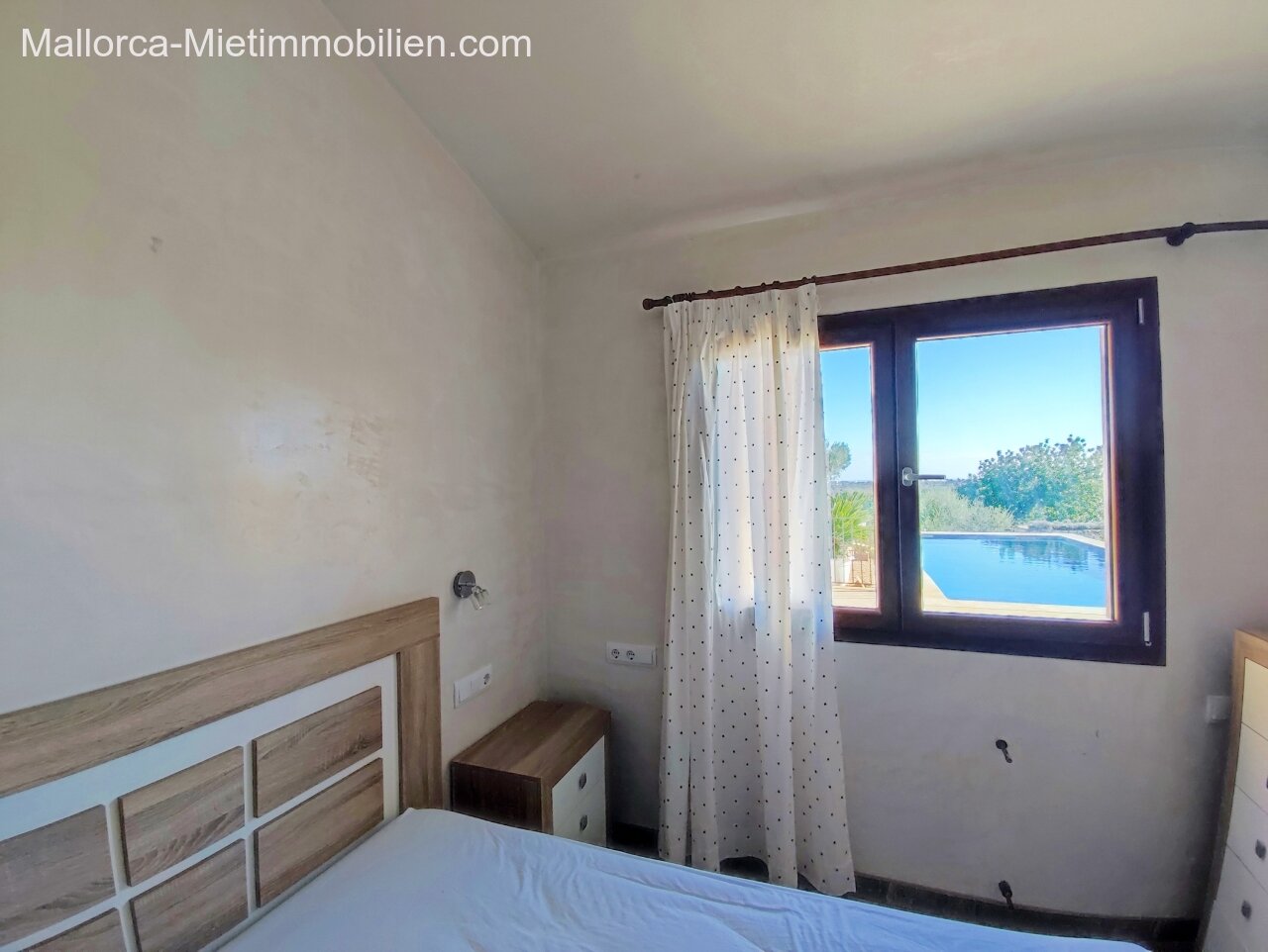 Porto Cristo / Mallorcas OstenSchöne moderne, edle Finca zur Miete mit gefälliger Auffahrt und elektrischem Tor. Die Finca ist nicht komplett eingezäunt (Steinmauer ja). Für Hunde gibt es bereits ein Hütebobsystem. Das Haus gliedert sich über einen hellen Wohnbereich mit Pelletofen und Sichtfenster bei der Sitzgruppe sowie eine AC warm/kalt/Entfeuchter, Essgruppe und angrenzender gemütlicher Vollküche mit modernen Elementen. Die Schlafzimmer haben eine gute Größe, der Masterbedroom ist nochmals etwas größer, mit Einbauschränken und Bad en suite. Der Masterbedroom wird unmöbliert übergeben.