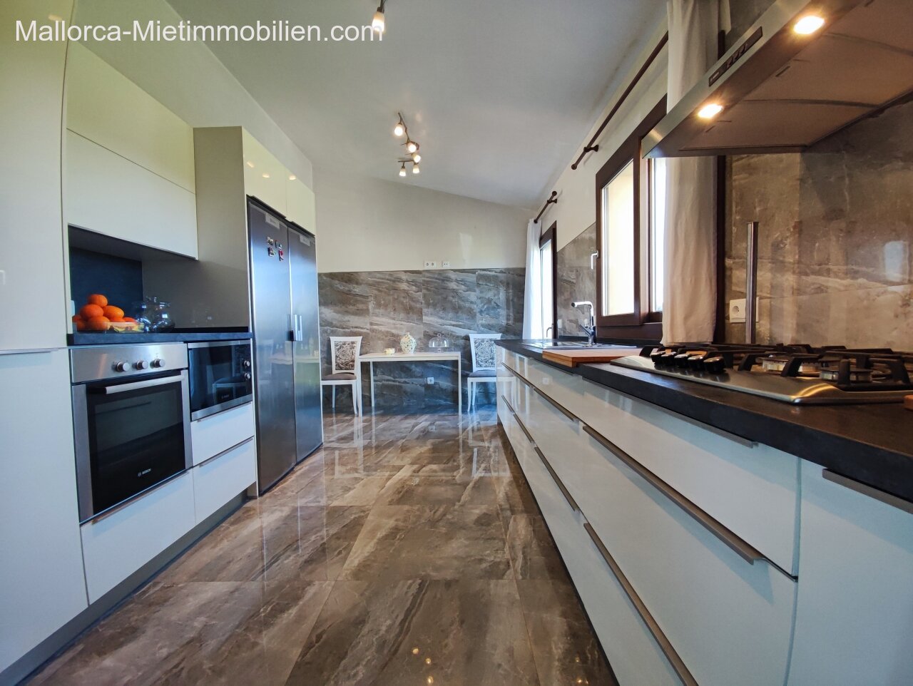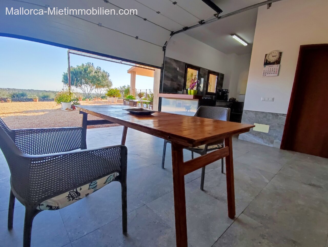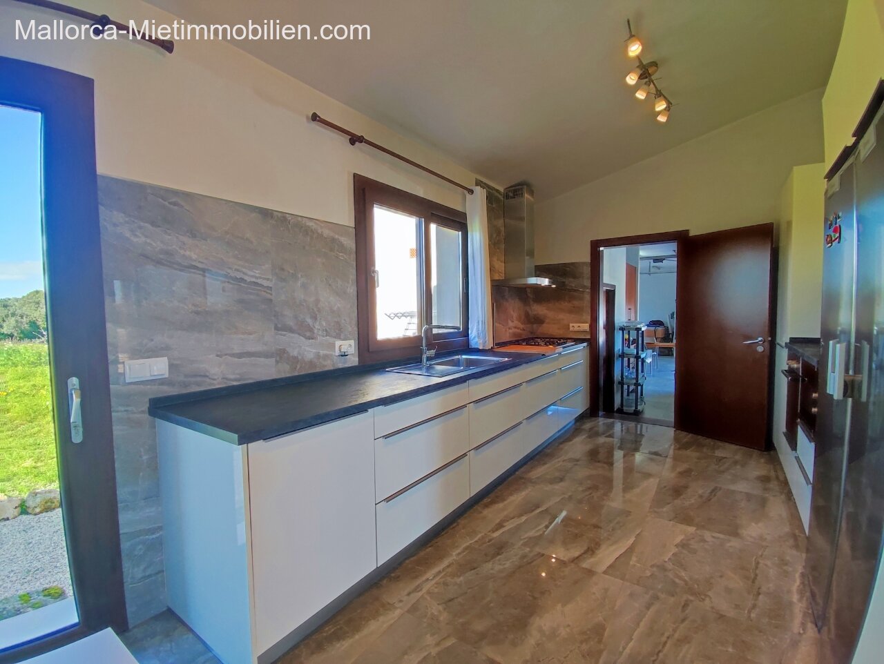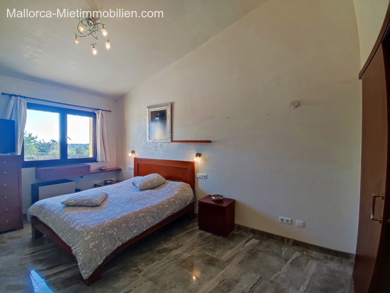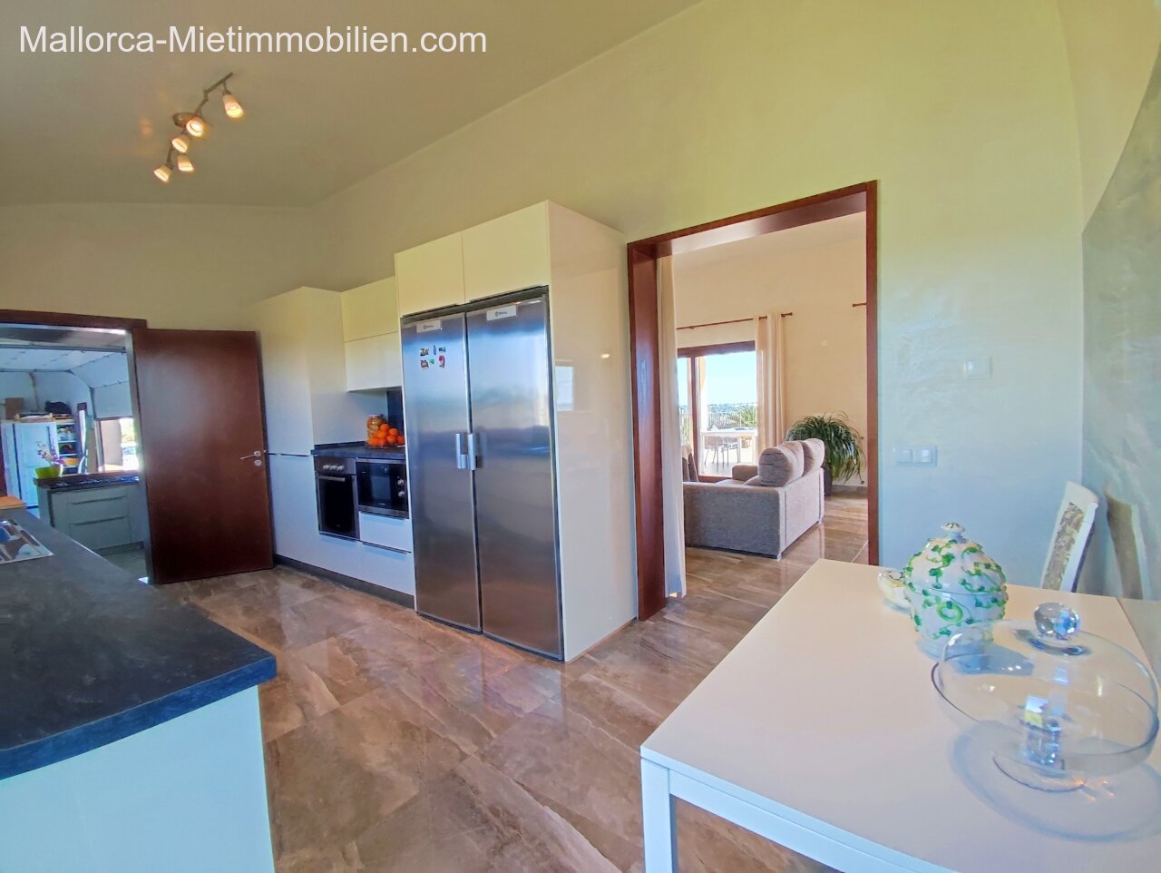 Porto Cristo / Mallorcas OstenSchöne moderne, edle Finca zur Miete mit gefälliger Auffahrt und elektrischem Tor. Die Finca ist nicht komplett eingezäunt (Steinmauer ja). Für Hunde gibt es bereits ein Hütebobsystem. Das Haus gliedert sich über einen hellen Wohnbereich mit Pelletofen und Sichtfenster bei der Sitzgruppe sowie eine AC warm/kalt/Entfeuchter, Essgruppe und angrenzender gemütlicher Vollküche mit modernen Elementen. Die Schlafzimmer haben eine gute Größe, der Masterbedroom ist nochmals etwas größer, mit Einbauschränken und Bad en suite. Der Masterbedroom wird unmöbliert übergeben.