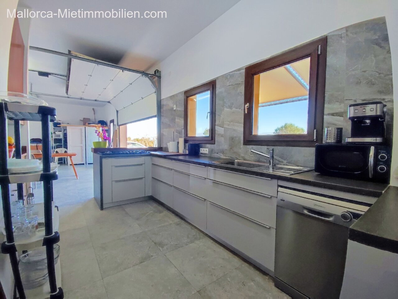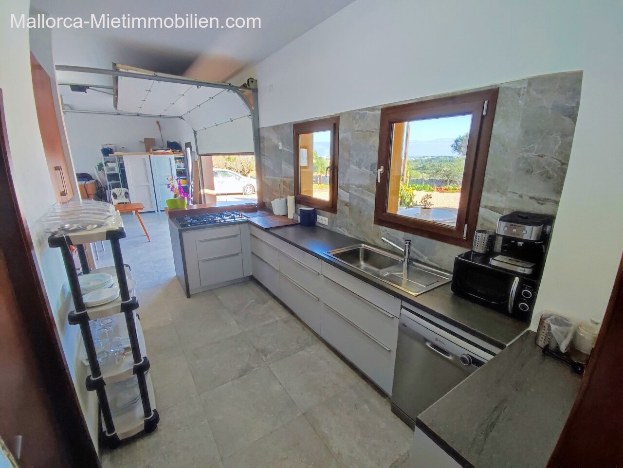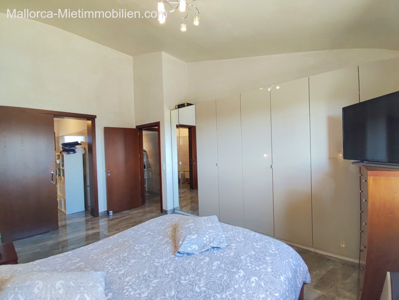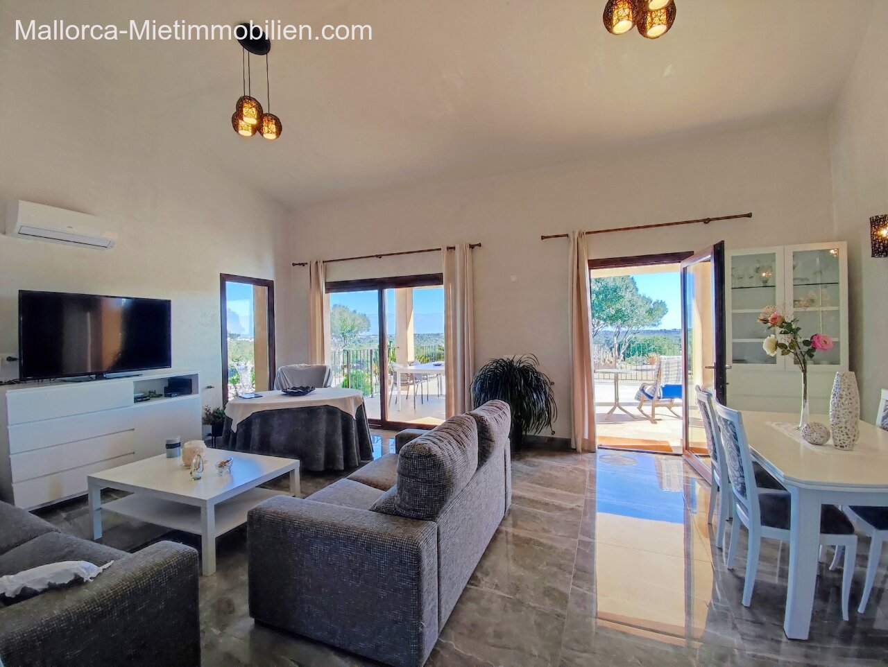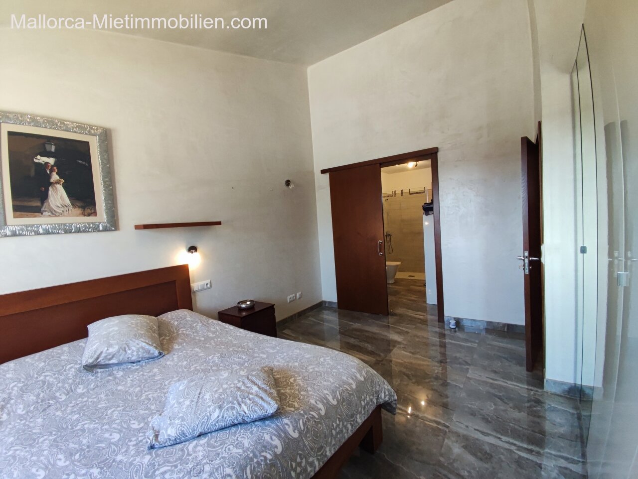 Porto Cristo / Mallorcas OstenSchöne moderne, edle Finca zur Miete mit gefälliger Auffahrt und elektrischem Tor. Die Finca ist nicht komplett eingezäunt (Steinmauer ja). Für Hunde gibt es bereits ein Hütebobsystem. Das Haus gliedert sich über einen hellen Wohnbereich mit Pelletofen und Sichtfenster bei der Sitzgruppe sowie eine AC warm/kalt/Entfeuchter, Essgruppe und angrenzender gemütlicher Vollküche mit modernen Elementen. Die Schlafzimmer haben eine gute Größe, der Masterbedroom ist nochmals etwas größer, mit Einbauschränken und Bad en suite. Der Masterbedroom wird unmöbliert übergeben.