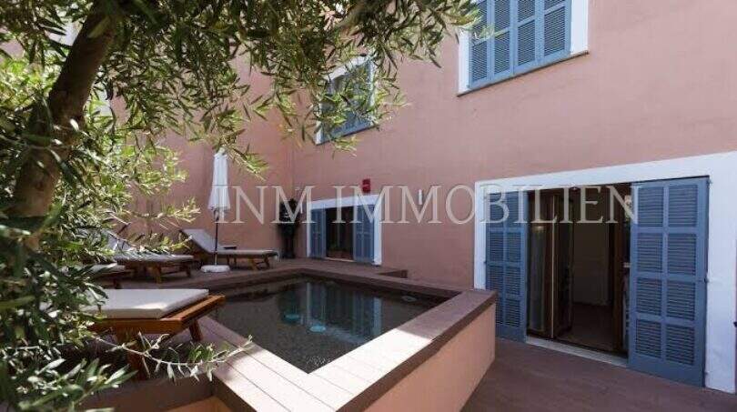 Boutique Hotel kaufen auf Mallorca mit Pool: Modernes kleines Boutique-Hotel in einem Dorf in der Inselmitte Mallorcas mit Pool und circa 10 Zimmern zu verkaufen.