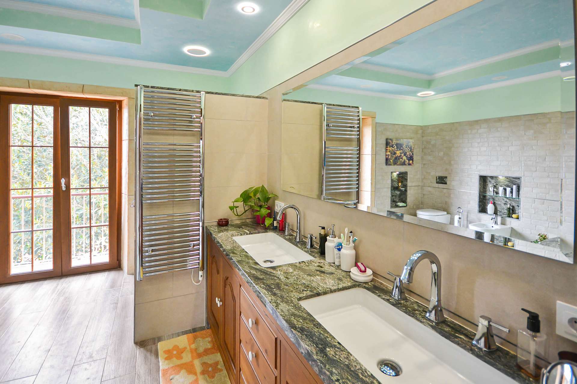 Im ersten Stock befinden sich zwei große Schlafräume mit einer 38m² Terrasse, ein Badezimmer mit Balkon, ein weiteres Schlafzimmer mit Bad en Suite, ein Ankleidezimmer und ein großer Balkon mit spektakulärer Aussicht.