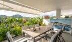 Vom Eingangsbereich befindet sich links ein Schlafzimmer sowie ein Abstellraum. Im rechten Teil der Wohnung sind ein Tageslichtbad mit Regendusche sowie zwei weitere Schlafzimmer (eines davon mit Bad en Suite) vorhanden. Der offen gestaltete Wohn- Essbereich mit amerikanischer Küche bietet eine absolute Wohlfühlatmosphäre. Vom Wohnbereich und vom Master-Schlafzimmer ist der Zugang zur Terrasse, die in den wunderschön angelegten mediterranen Garten übergeht. Genießen Sie von hier aus eine atemberaubende Aussicht. Ein HWR rundet das Angebot ab. Der private Garten wird einmal pro Woche von einem Gärtner gepflegt.