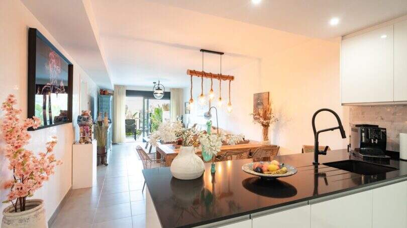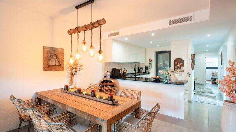Endesa Strom, Klimaanlage (warm/kalt), Fußbodenheizung, Handtuchheizkörper, Einbauküche mit Osmoseanlage, elektrische Rollläden, Moskitonetze in Fenstern, Entkalkungsanlage, eigener Garten, elektrische Markise, Einbauschränke, Kellerraum, ein Stellplatz in der Tiefgarage sowie ein weiterer Autostellplatz im Freien, Gemeinschaftspool mit Außendusche und Jacuzzi, Kinderpool, Kinderspielplatz u.v.m.