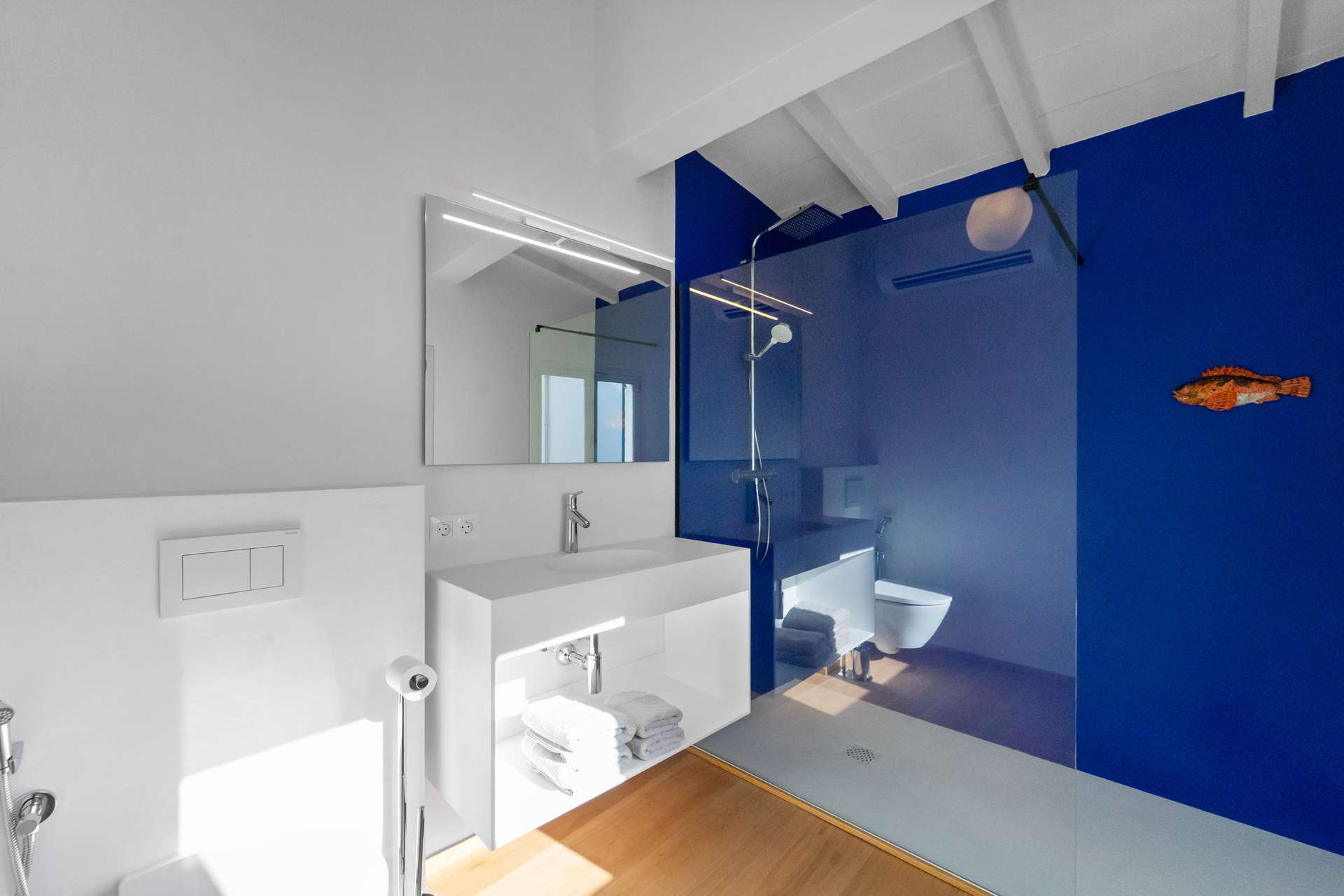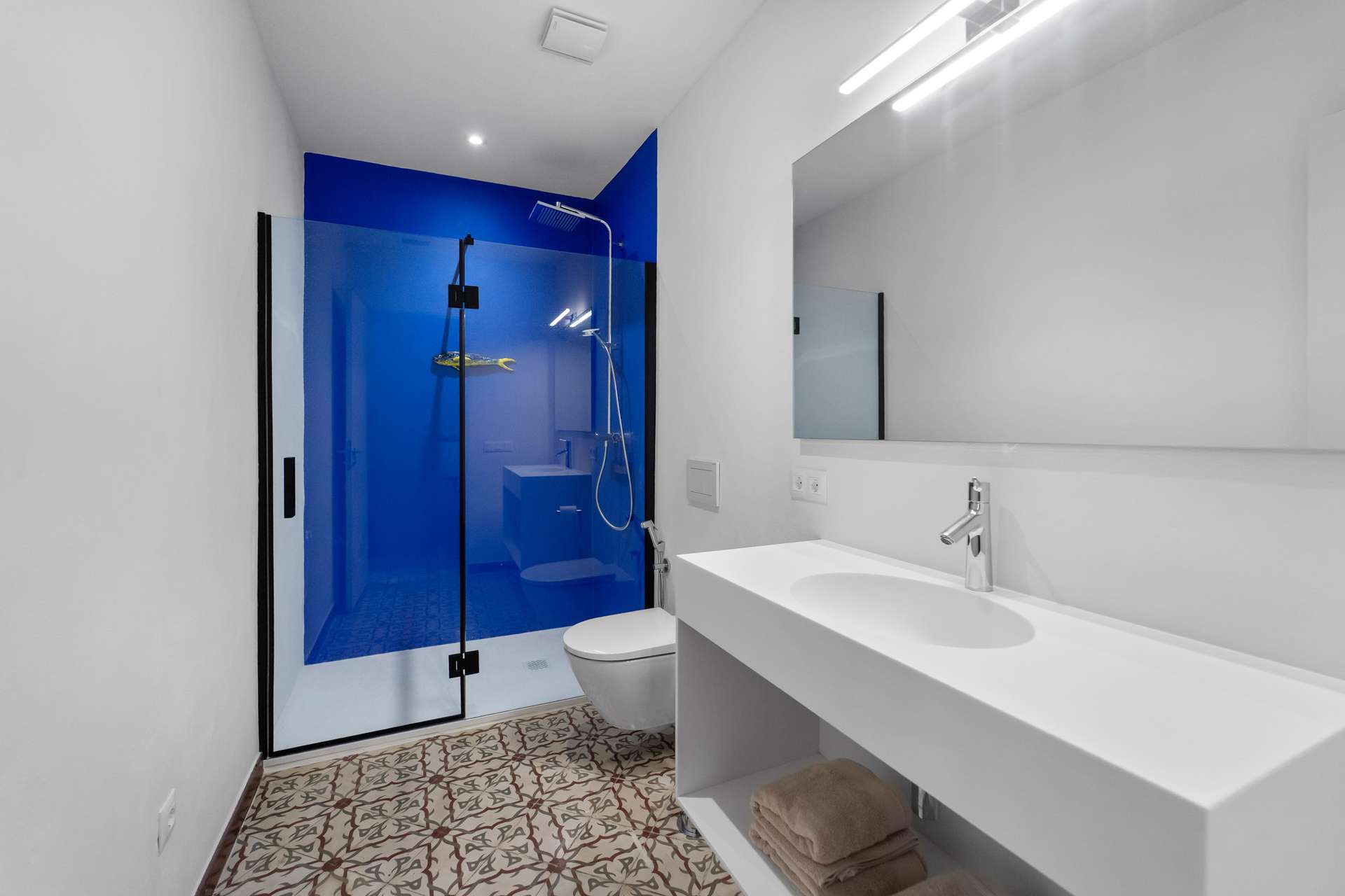 Im ersten Stock befinden sich drei Doppelzimmer mit begehbarem Kleiderschrank und en-suite Bädern. Die originalen mallorquinischen Fliesen verleihen Authentizität und Charakter, während moderne Elemente Komfort und Funktionalität garantieren.