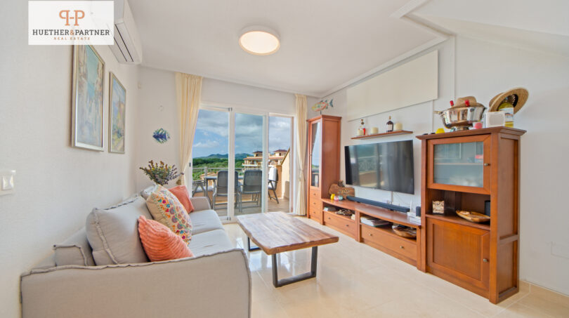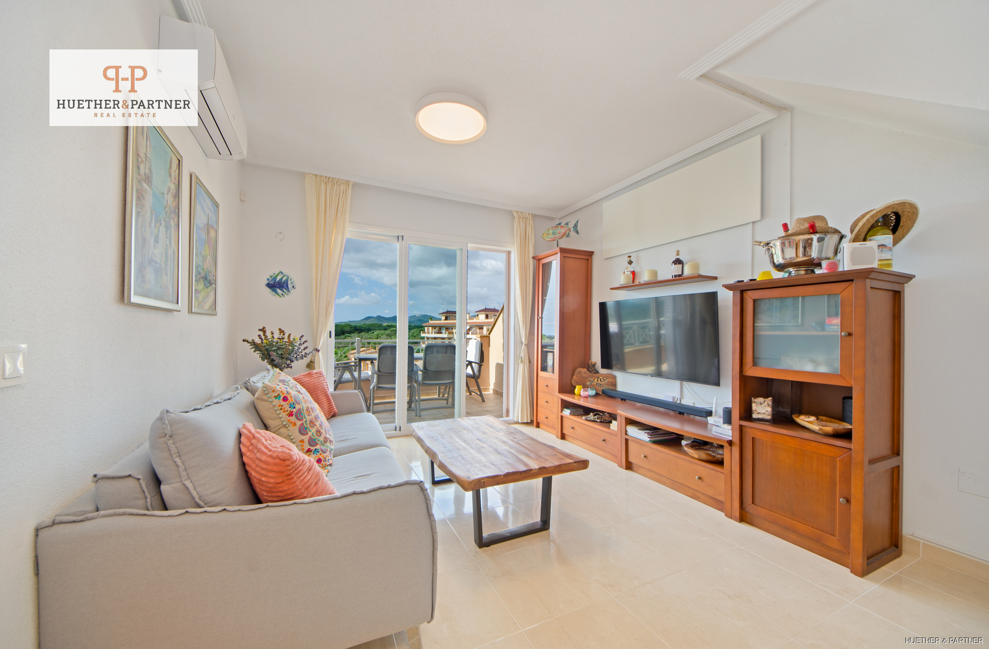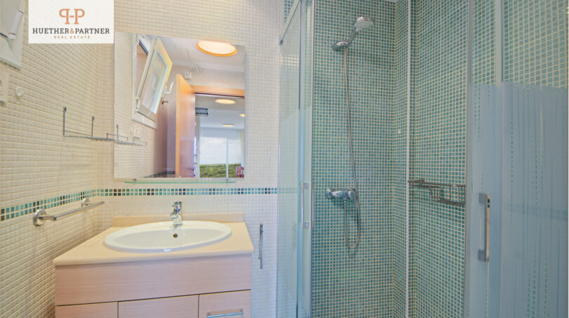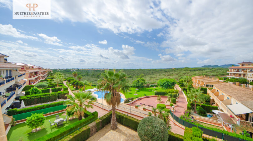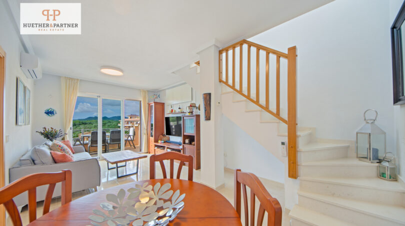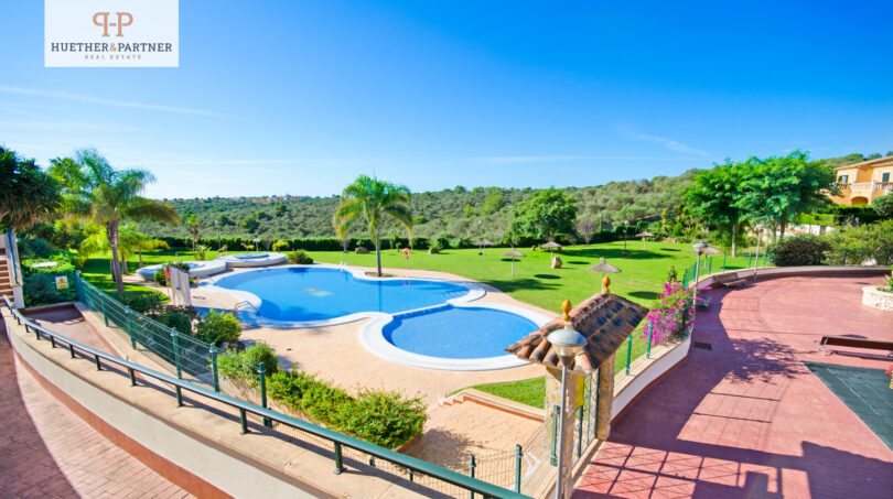 Cales de Mallorca ist ein ruhiger Küstenort im Südosten der Insel, und genau hier wartet dieses moderne Penthouse auf Sie. Die Wohnung liegt in einer gepflegten Gemeinschaftsanlage und verbindet entspanntes Leben am Meer mit bester Infrastruktur. Nur etwa 500 Meter trennen Sie vom Strand Es Domingos, während Ihr Balkon einen traumhaften Blick auf die stilvolle Poolanlage, das nahe Naturschutzgebiet Valle de Cala Domingos und das offene Meer bietet. Wer Wasser liebt, hat hier gleich drei Strände direkt vor der Tür – alle glasklar und zum Entspannen oder Spazieren ideal.