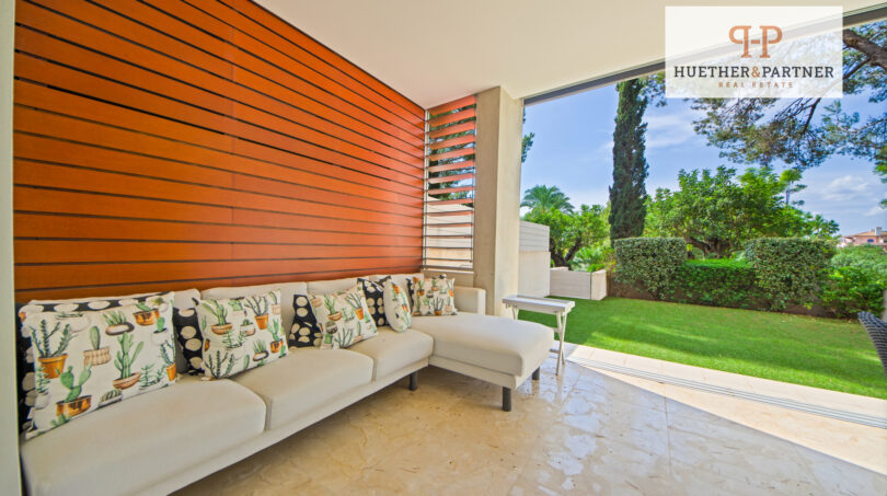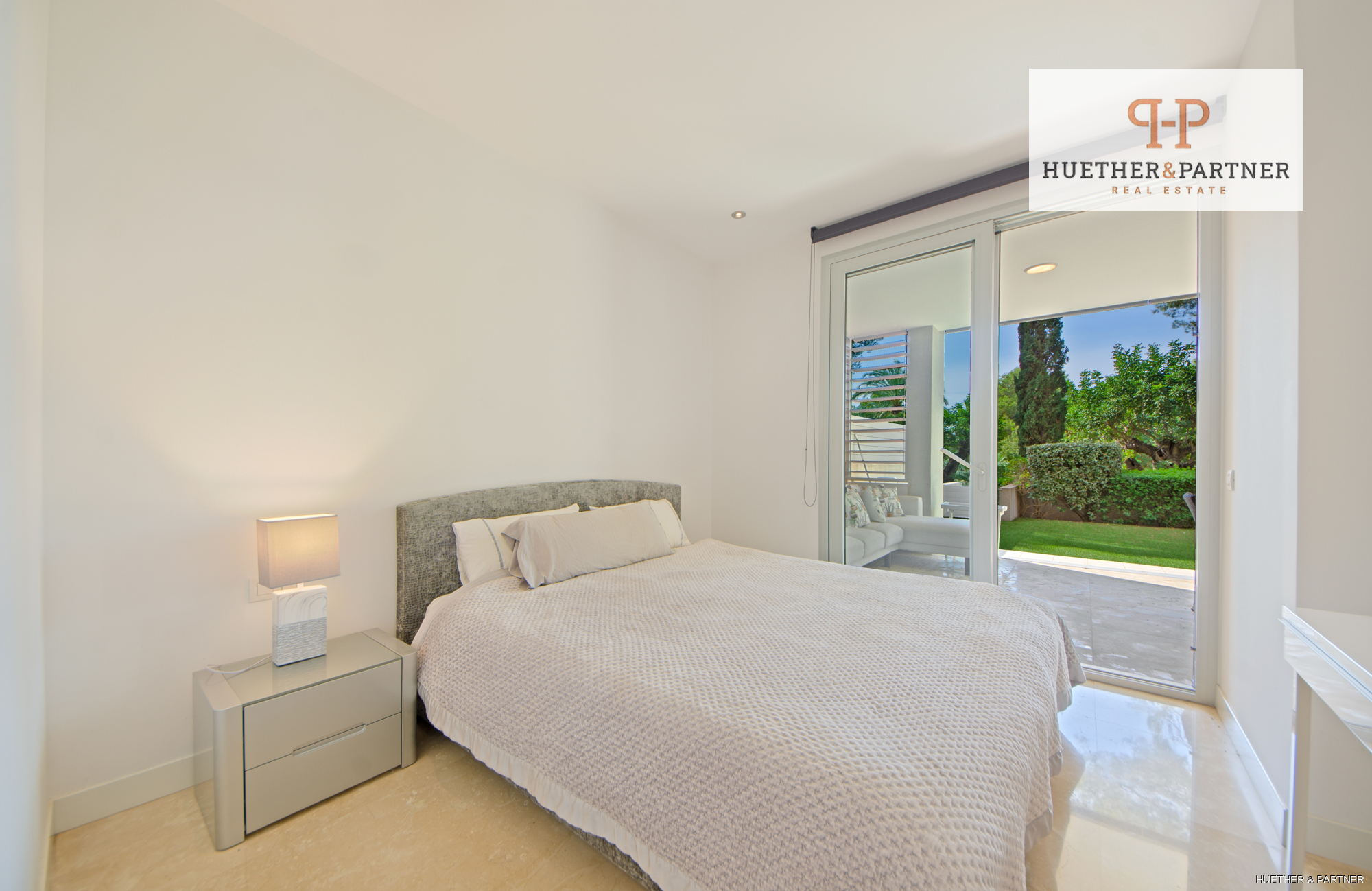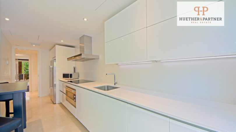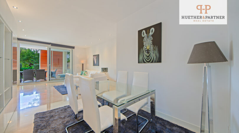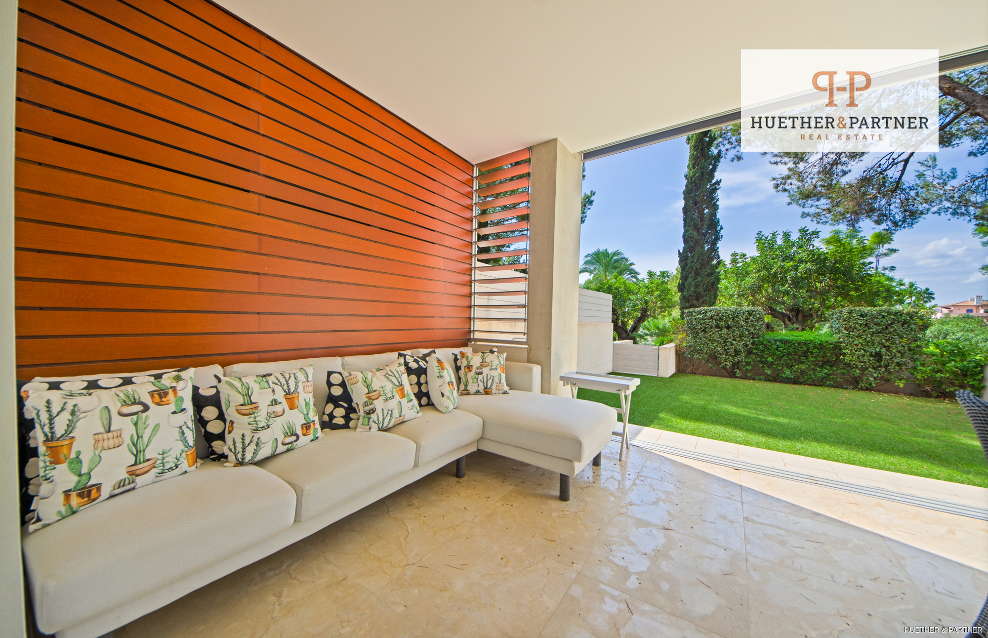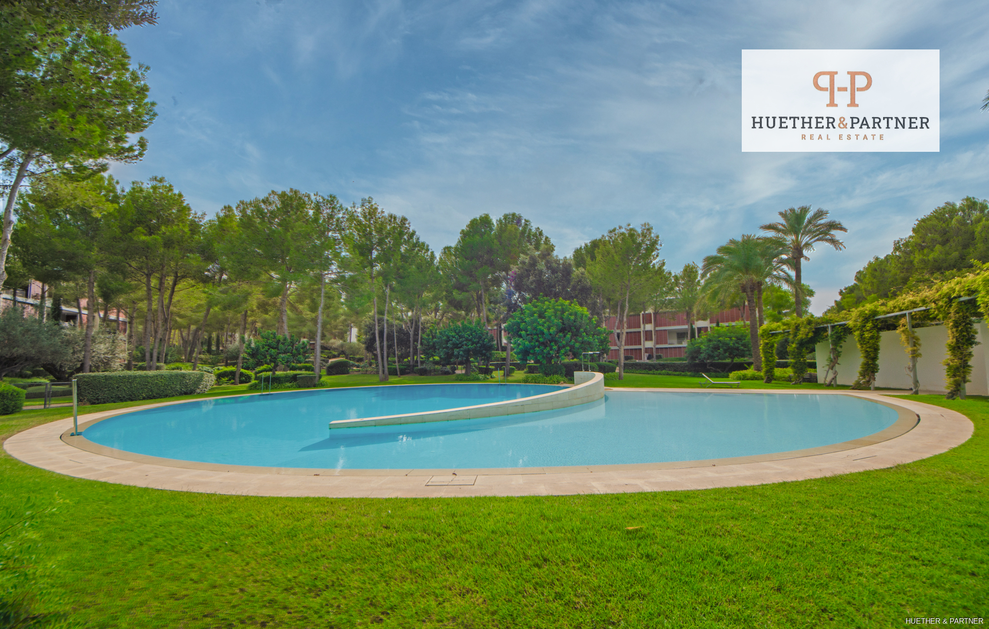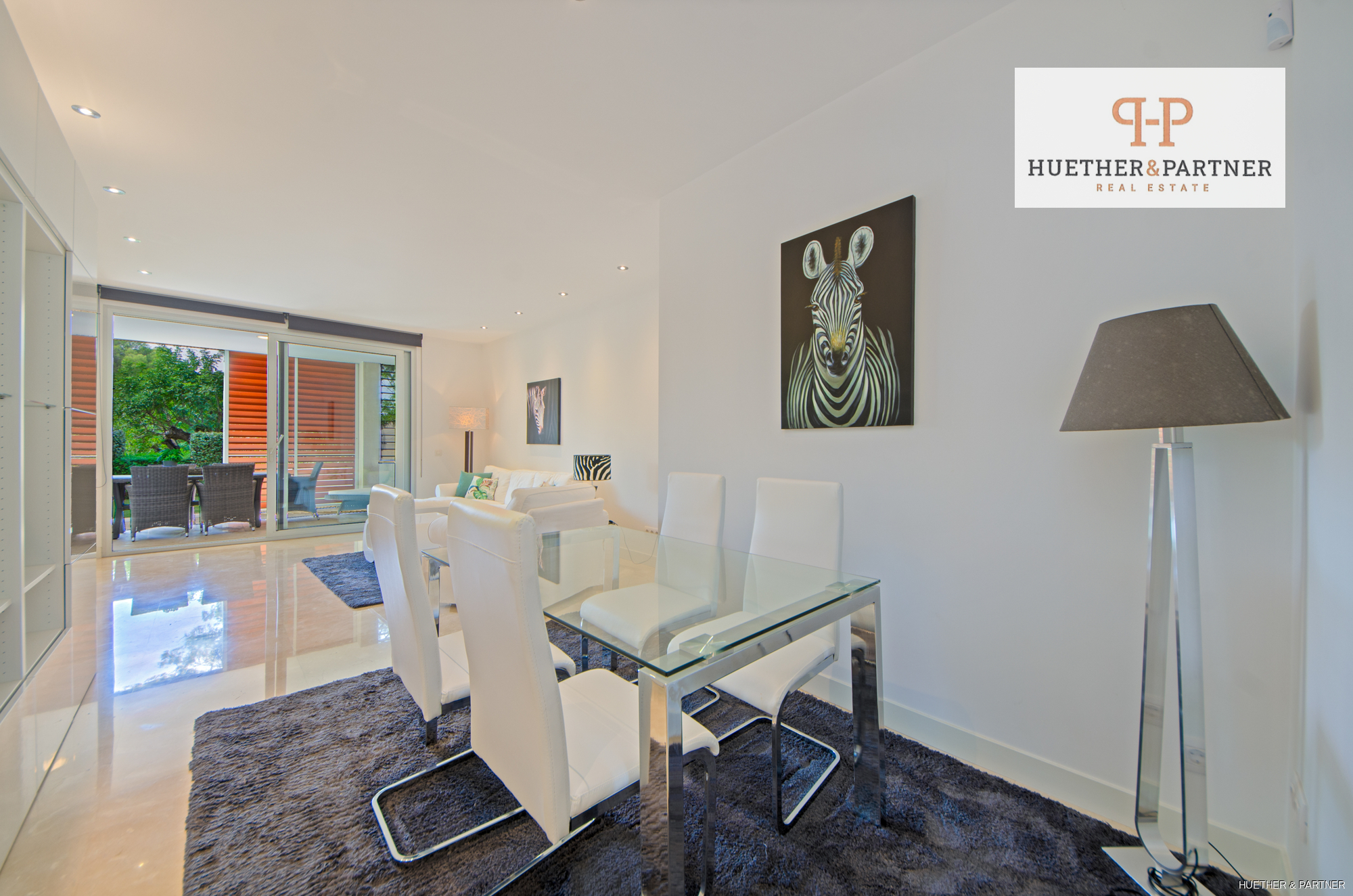 Calvià / Mallorcas WestenLuxuswohnung zu kaufen in Bendinat mit Pool: in der renommierten Wohnanlage von Bendinat befindet sich diese vollständig modernisierte Erdgeschosswohnung mit eleganter Ausstattung und klarer Raumstruktur.