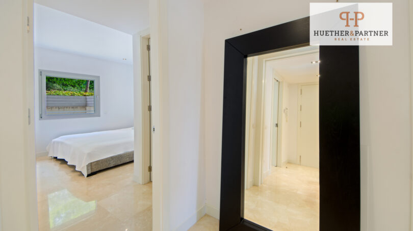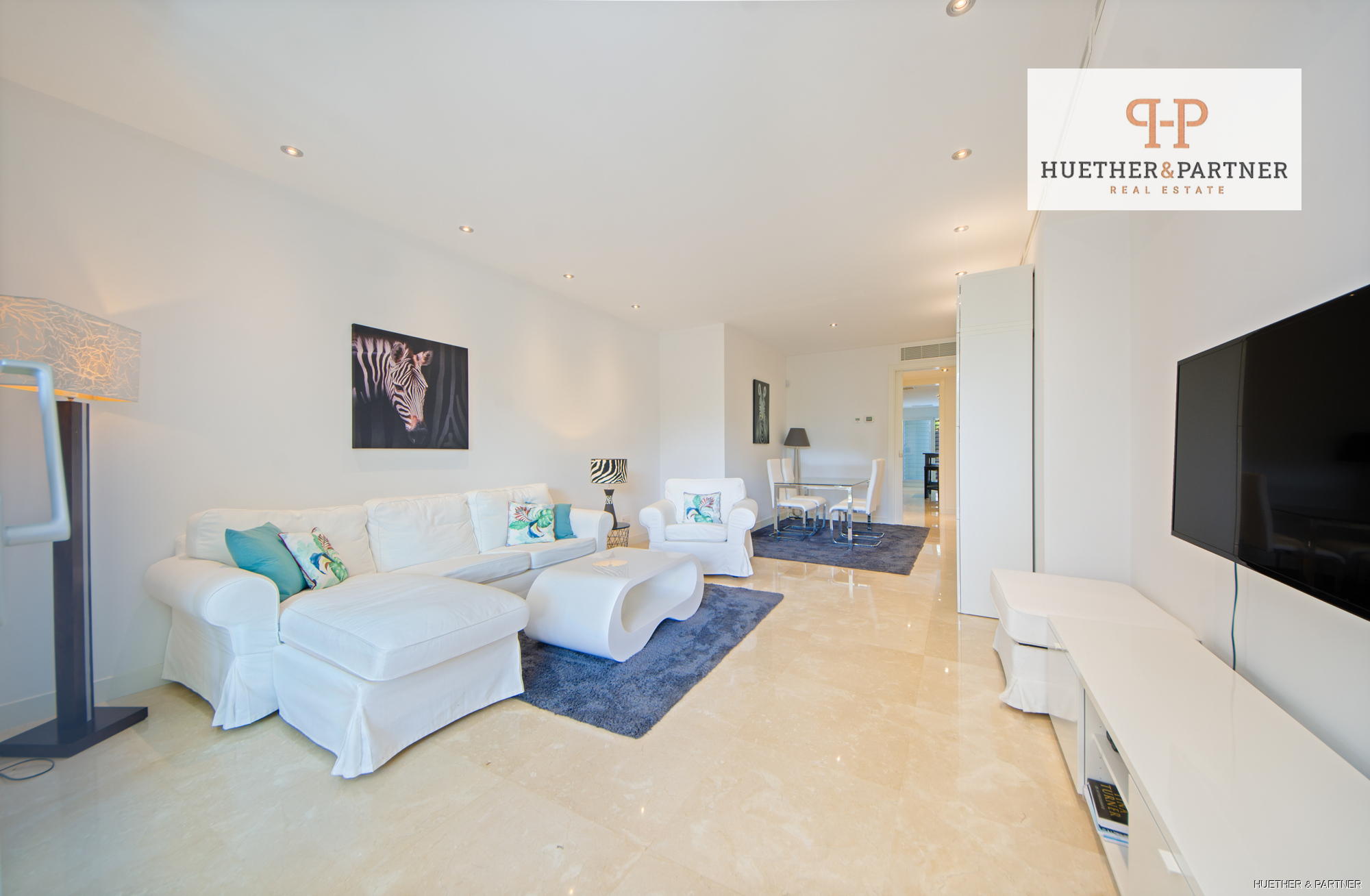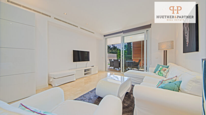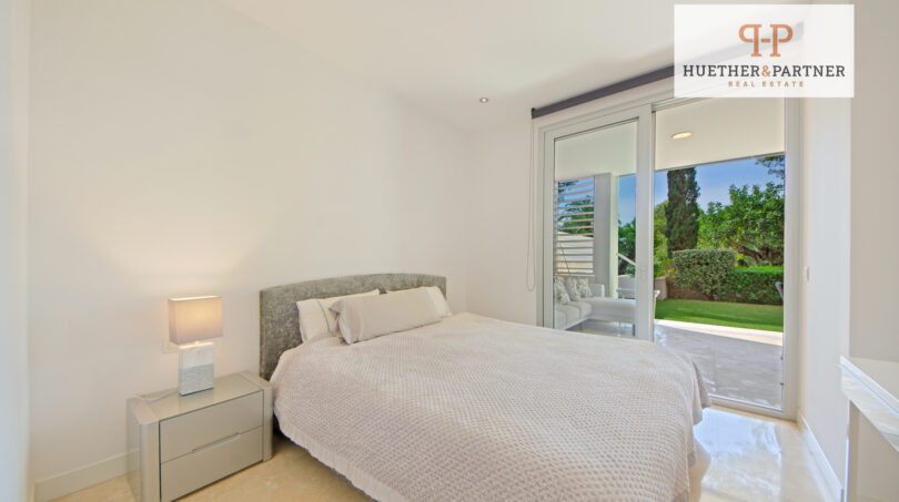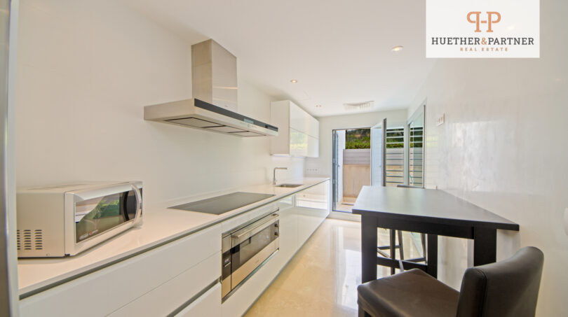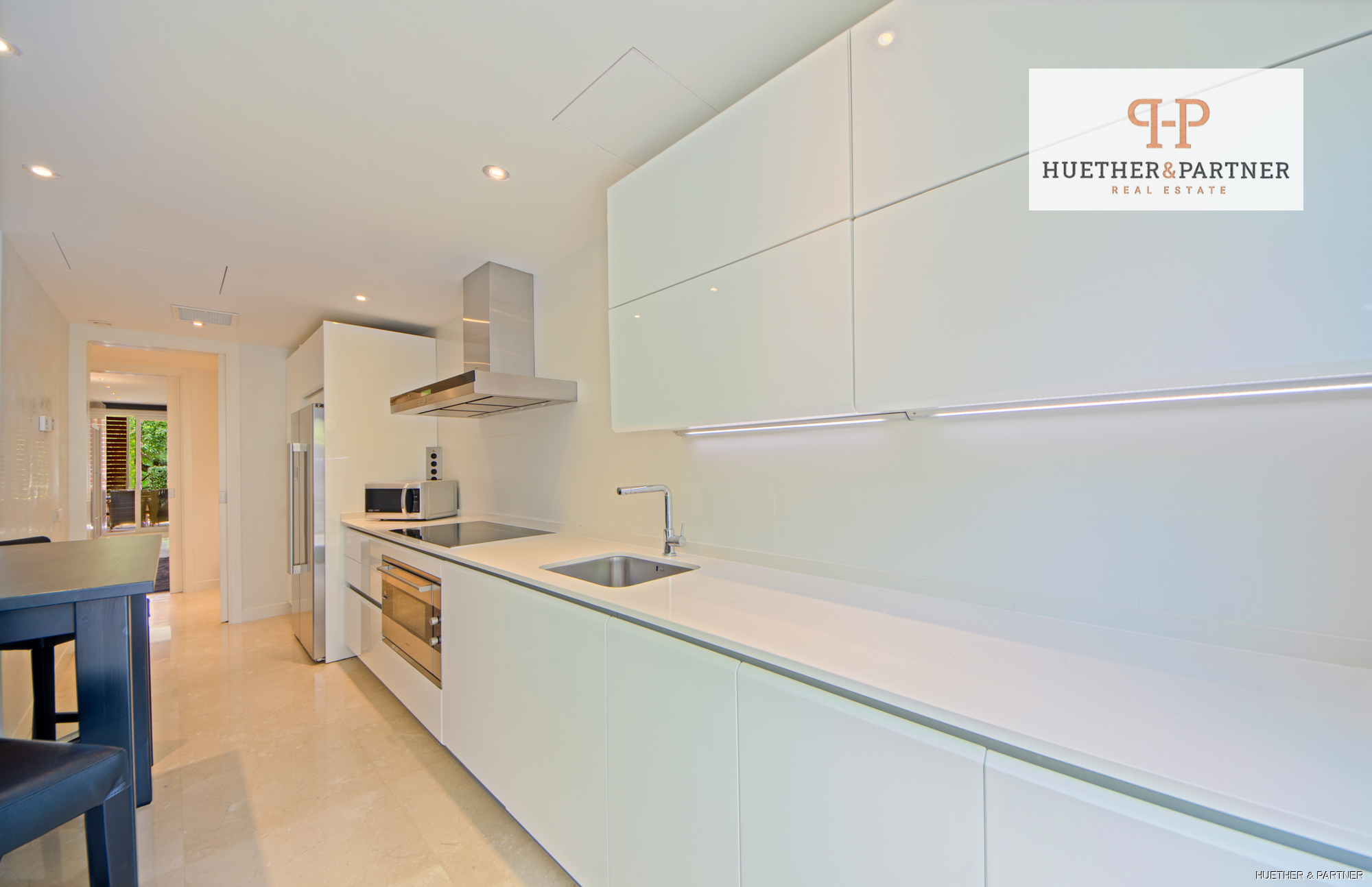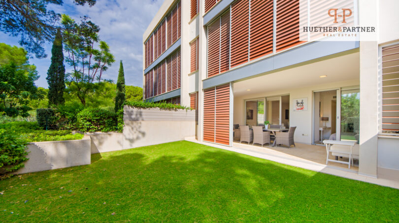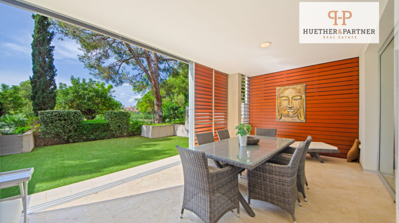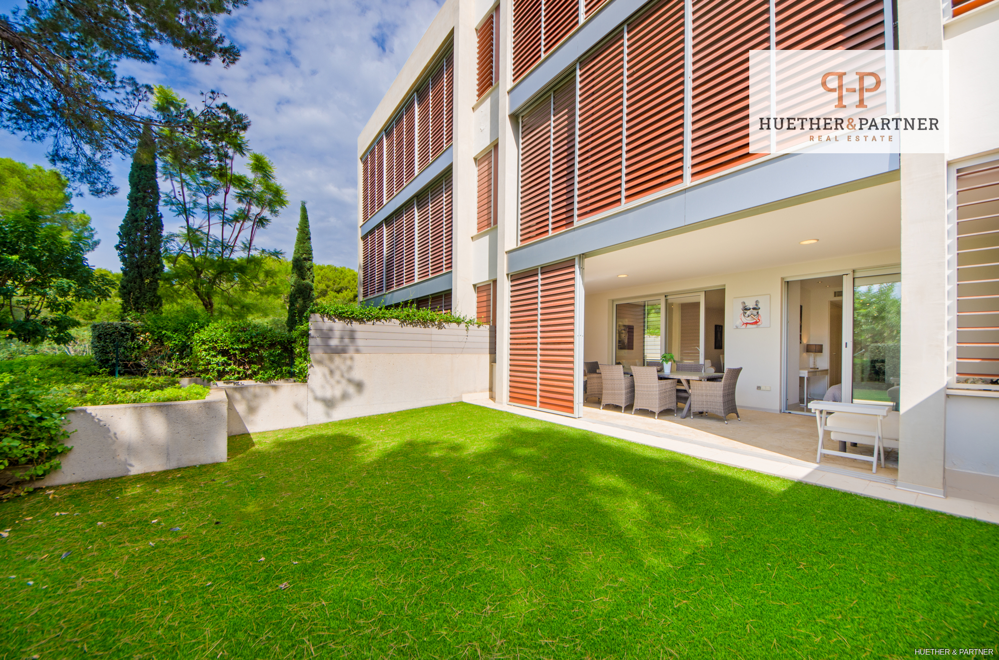 Calvià / Mallorcas WestenLuxuswohnung zu kaufen in Bendinat mit Pool: in der renommierten Wohnanlage von Bendinat befindet sich diese vollständig modernisierte Erdgeschosswohnung mit eleganter Ausstattung und klarer Raumstruktur.
