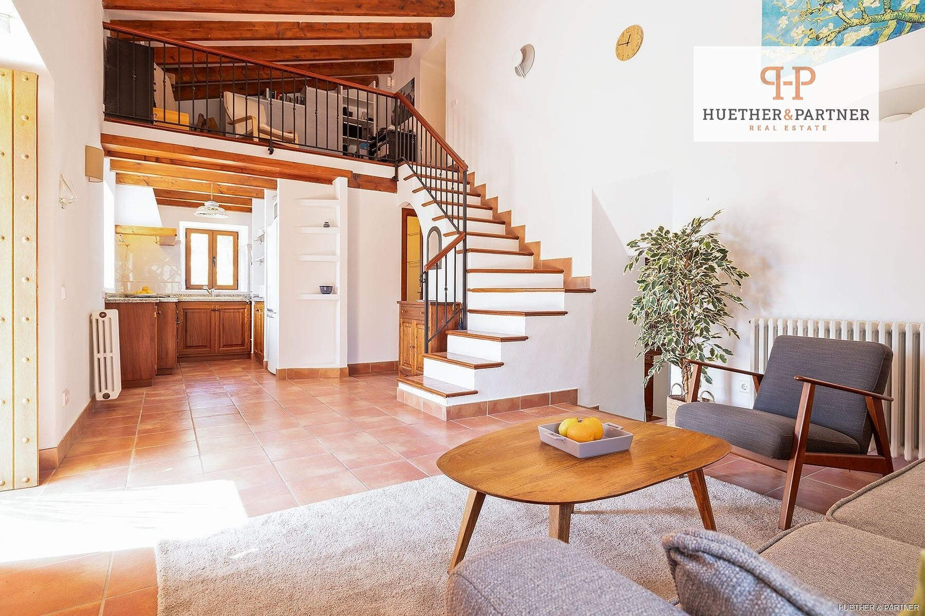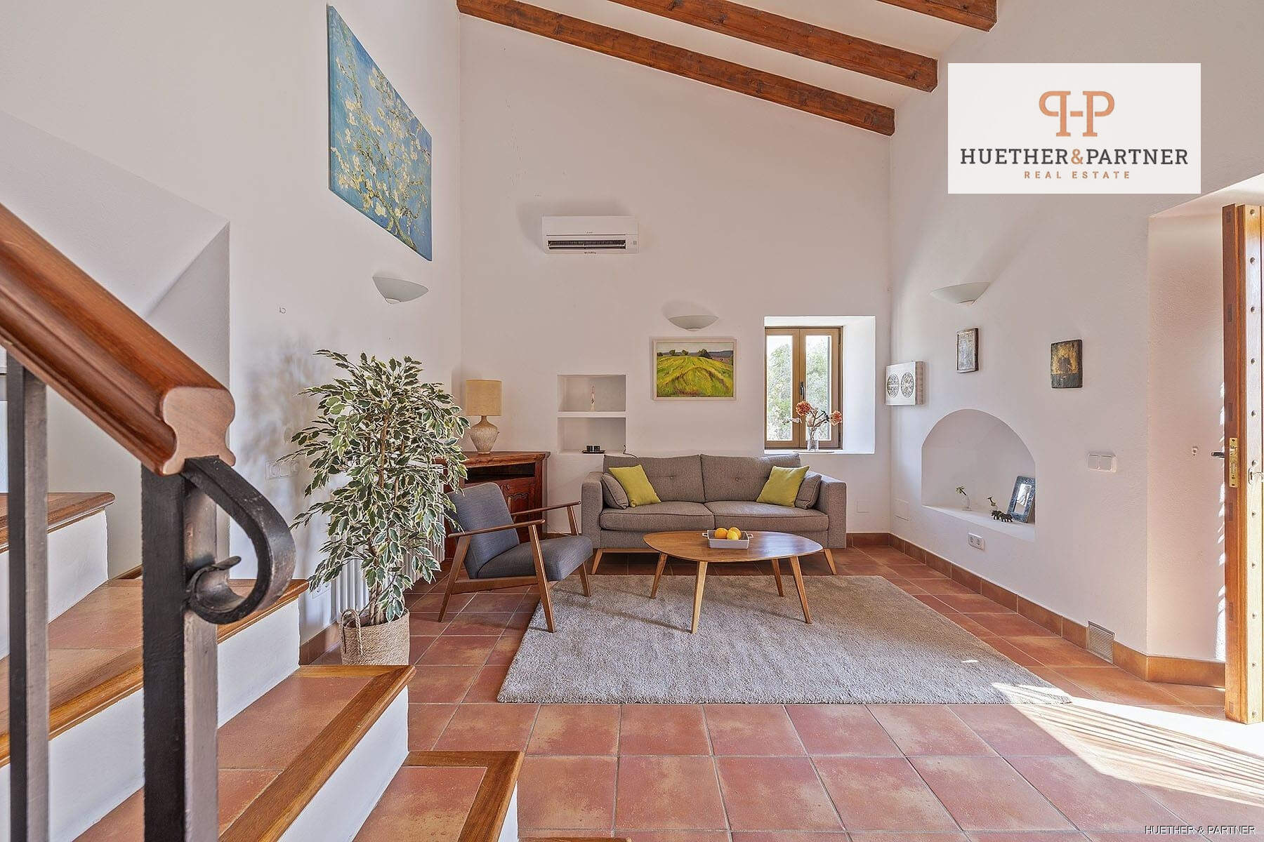 - Steinfassade, Steinböden, hohe Decken