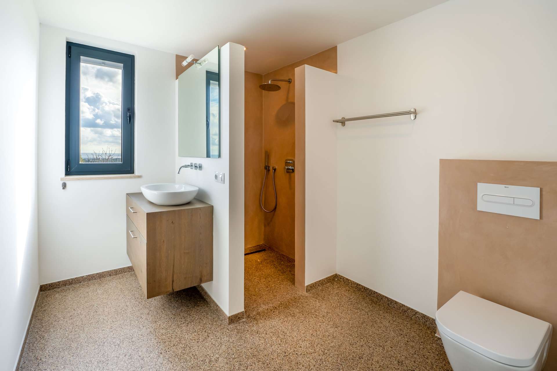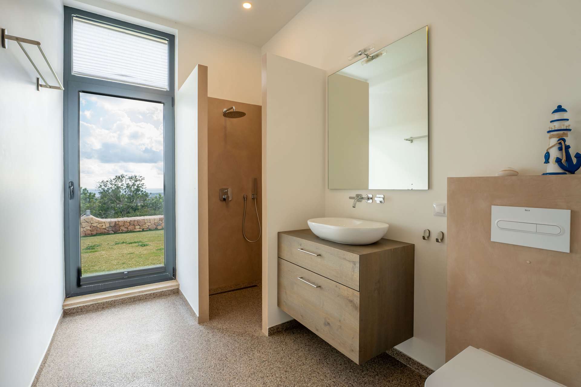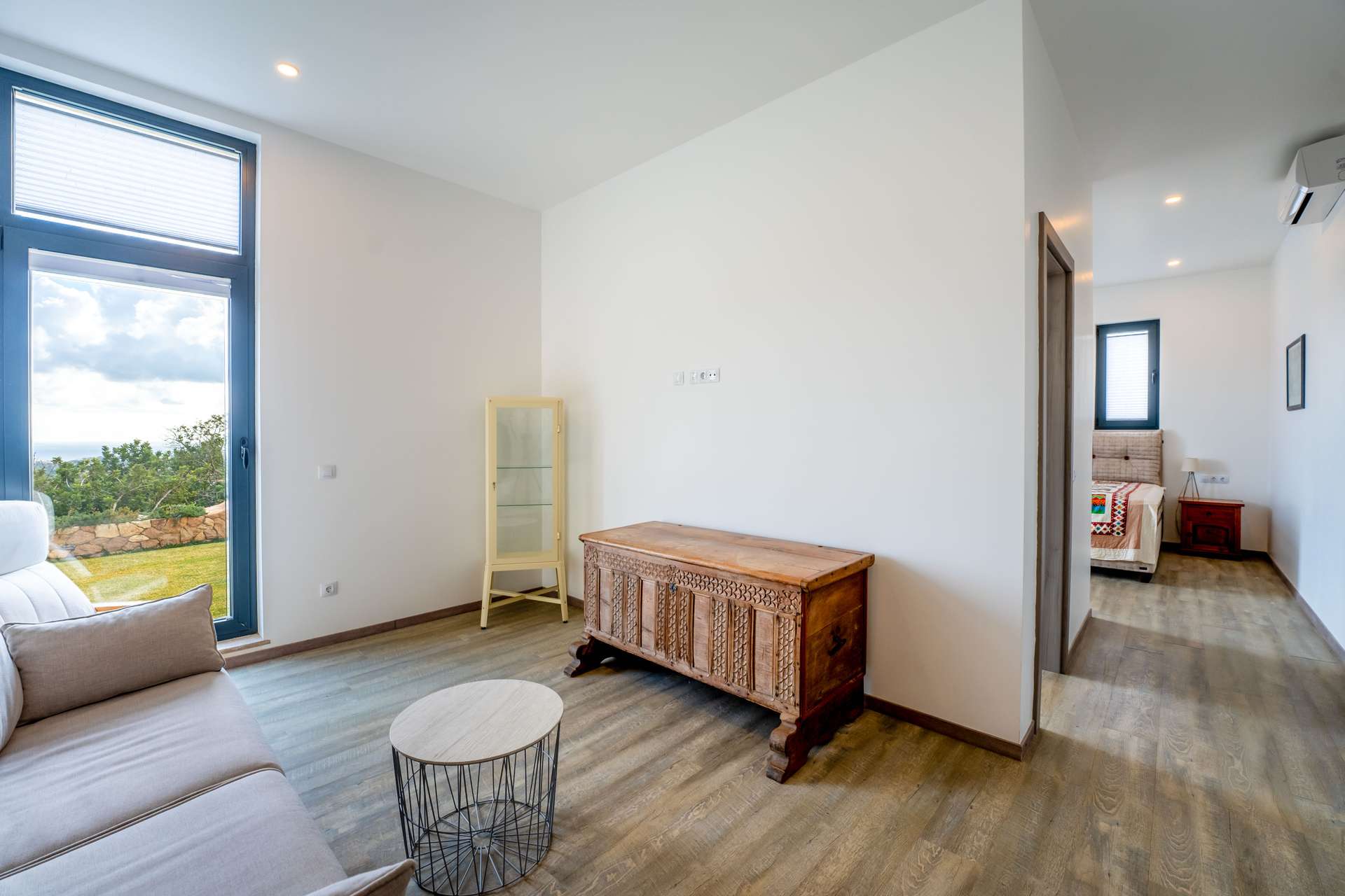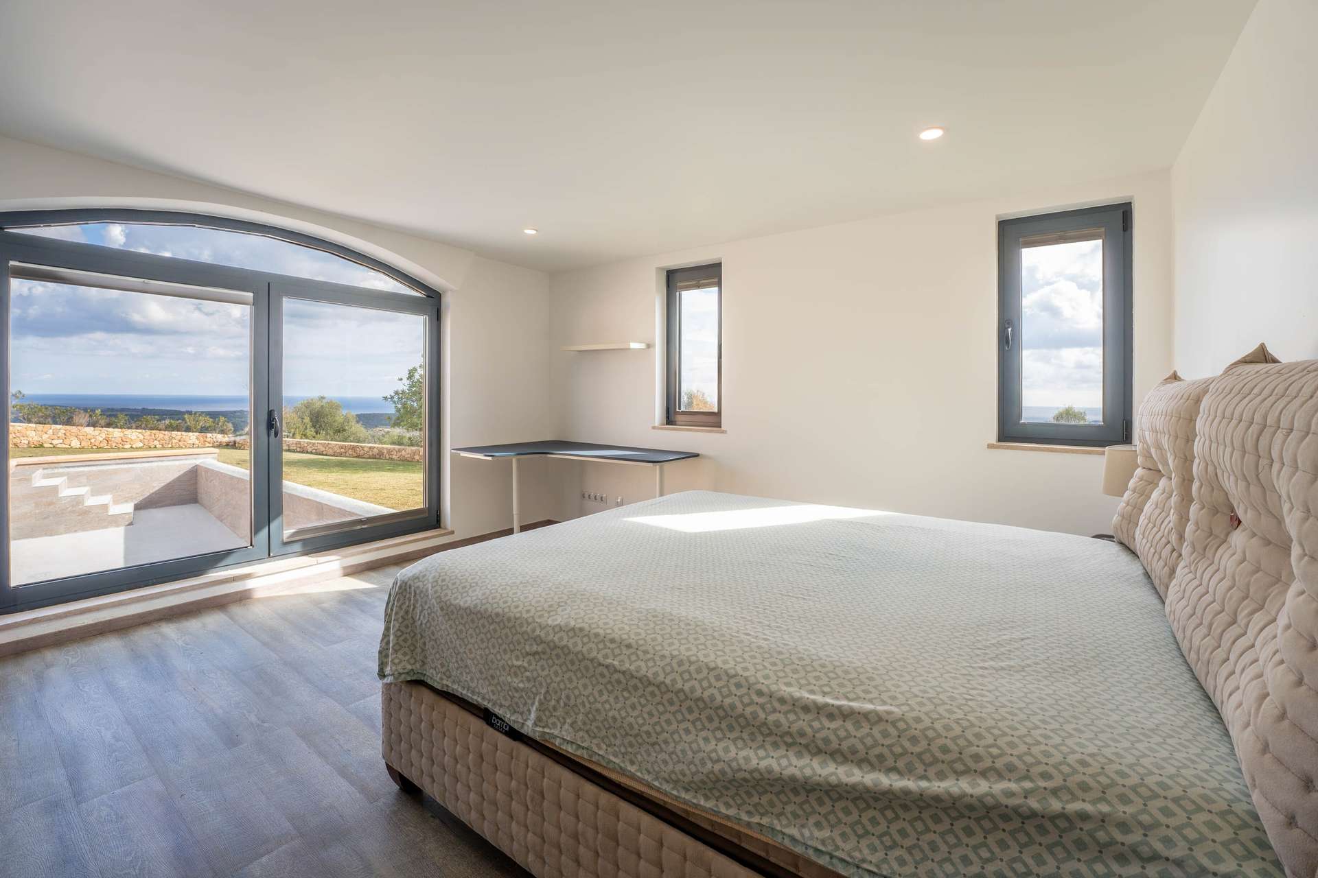 Stellen Sie sich vor, wie Sie morgens auf Ihrer privaten Terrasse den ersten Kaffee genießen, während der Blick über die sanften Hügel bis zum Meer reicht. Die Verbindung von Innen- und Außenbereichen schafft ein offenes, harmonisches Wohngefühl.