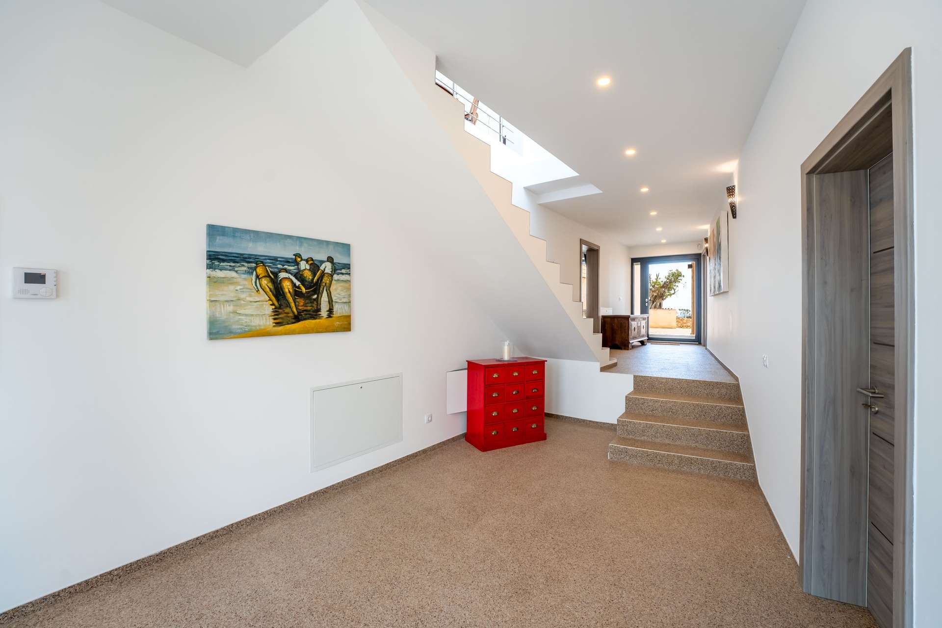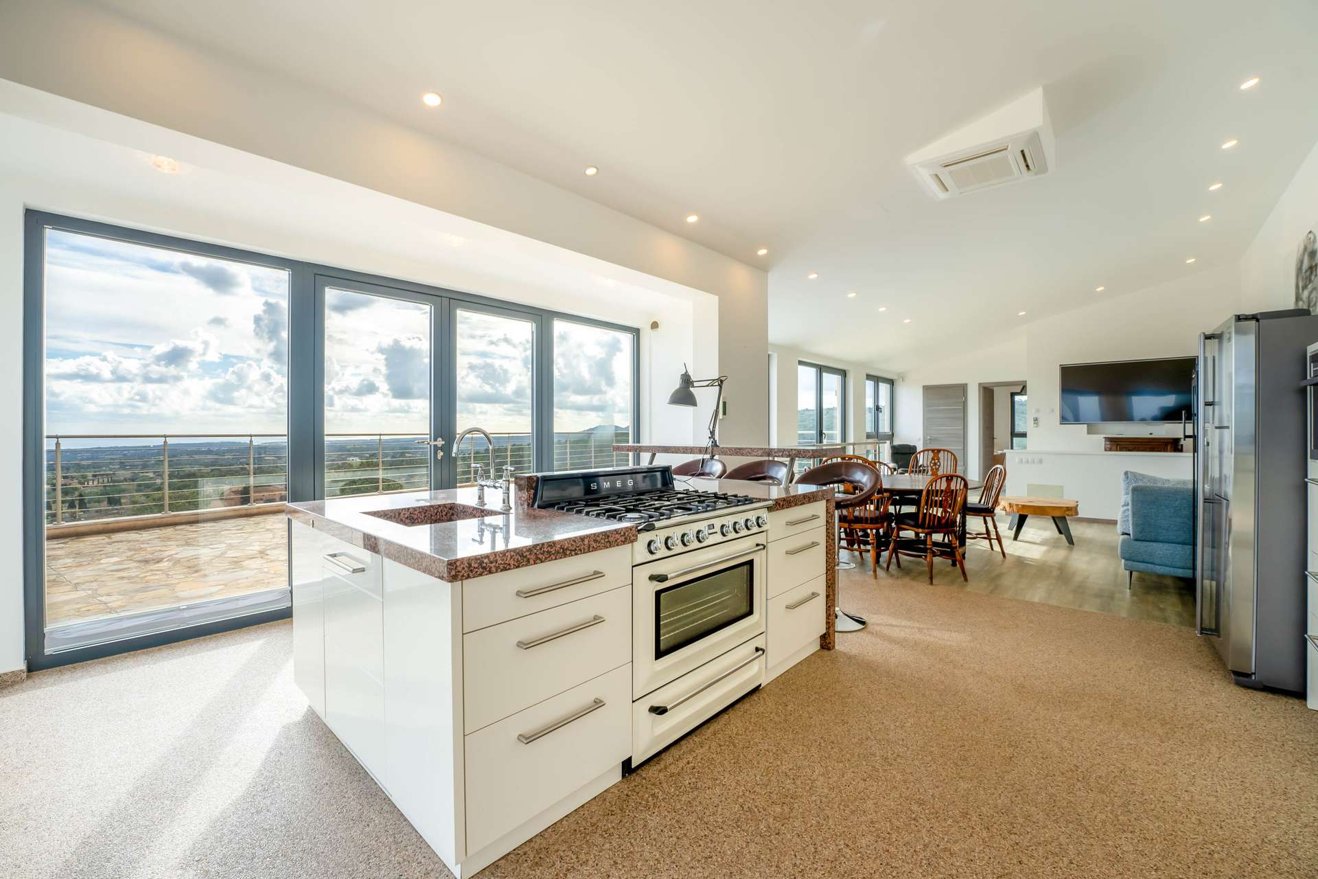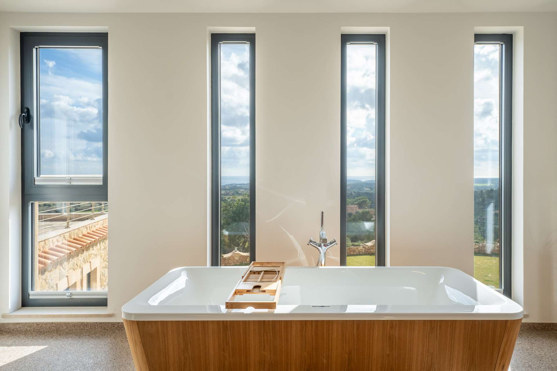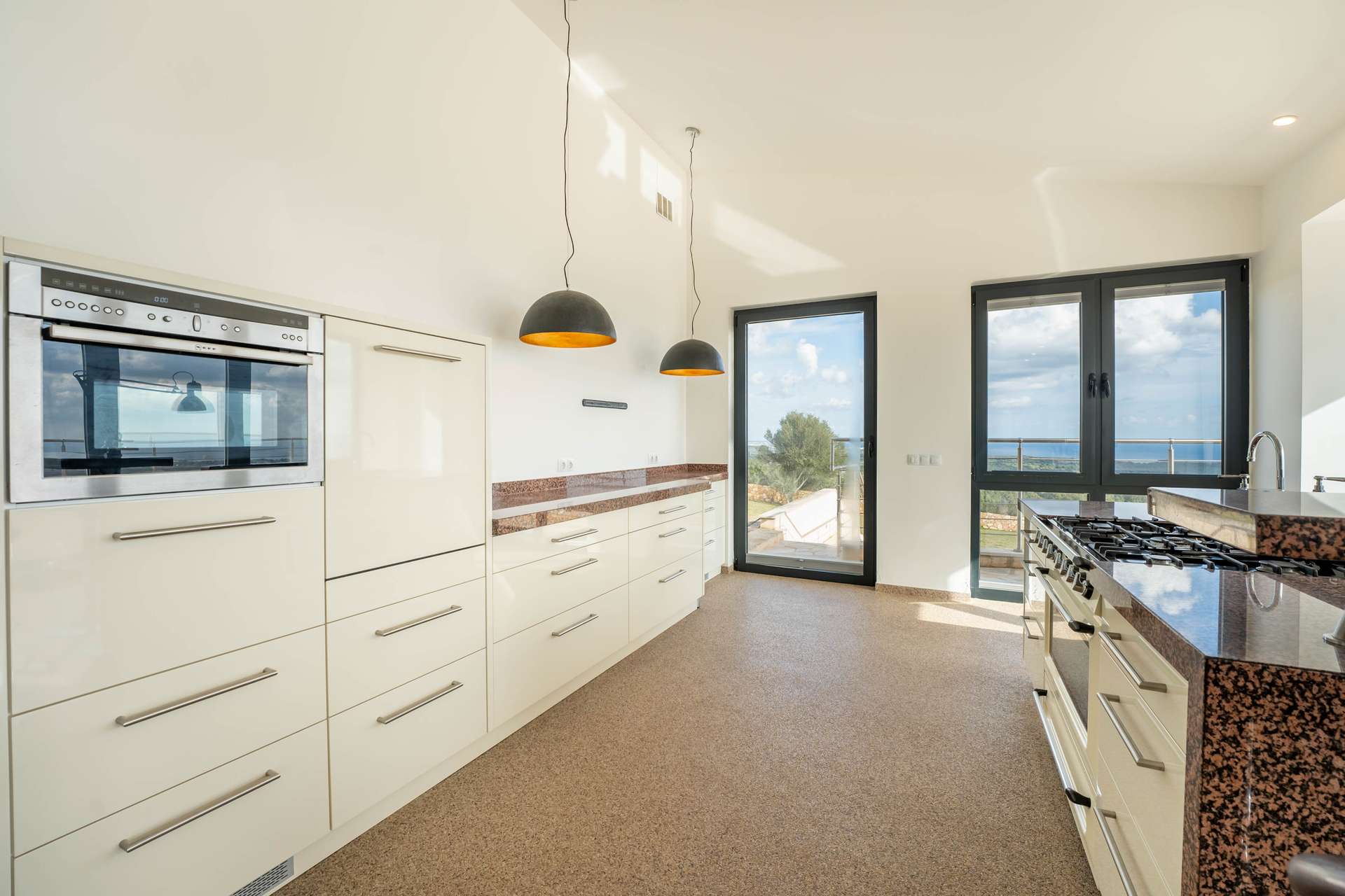 Stellen Sie sich vor, wie Sie morgens auf Ihrer privaten Terrasse den ersten Kaffee genießen, während der Blick über die sanften Hügel bis zum Meer reicht. Die Verbindung von Innen- und Außenbereichen schafft ein offenes, harmonisches Wohngefühl.