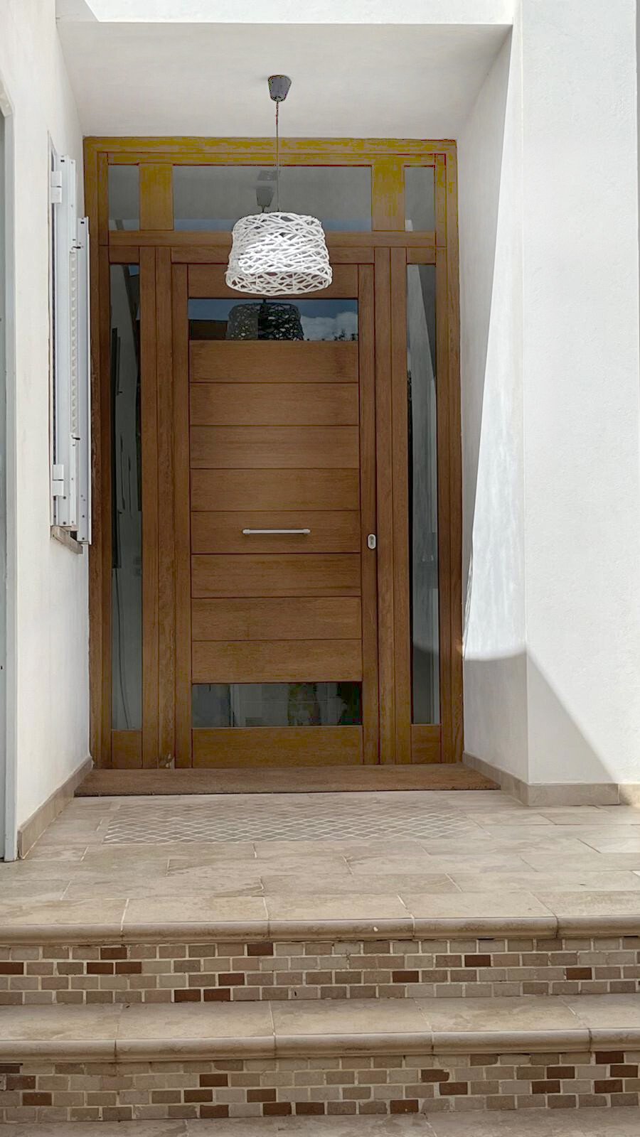 - Hochwertige PVC-Fenster, robuste Haustür aus Iroko