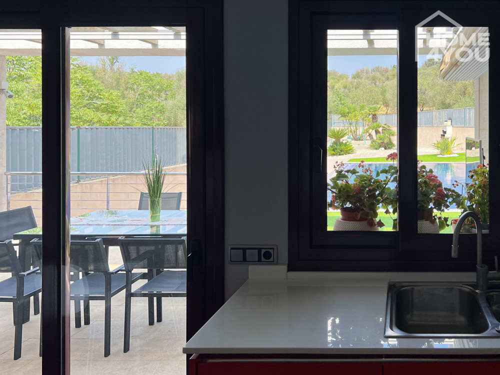 Haus zu kaufen in Felanitx mit Pool: dieses exklusive Anwesen in ruhiger Lage am Ortsrand von Felanitx vereint großzügiges Wohnen, stilvolle Architektur und legale Ferienvermietung unter einem Dach. Mit einer Wohnfläche von ca. 370 m² auf einem 760 m² großen Grundstück, hochwertiger Ausstattung und einer gültigen ETV-Lizenz für 8 Personen ist diese Immobilie sowohl als privater Rückzugsort als auch als Investment ideal geeignet.