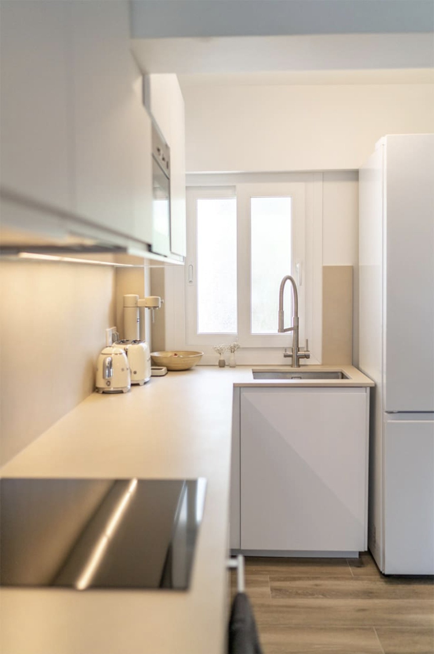 Erkunden Sie dieses exklusive Domizil, das durch seine hochwertige Renovierung und zeitgemäße Ausstattung besticht. Auf 70m² präsentiert sich ein offenes Raumkonzept mit einem lichtdurchfluteten Wohnbereich, der fließend in die voll ausgestattete Designer-Küche übergeht. Zwei geräumige Schlafräume mit maßgefertigten Einbauschränken garantieren höchsten Komfort, während das elegant gestaltete Badezimmer mit modernen Sanitärobjekten überzeugt.