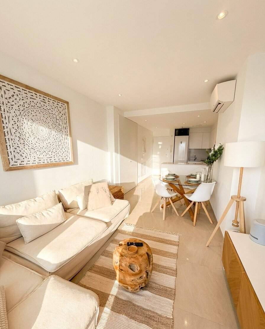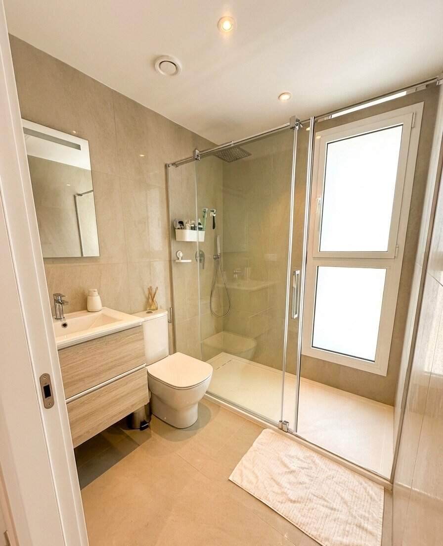 Der einladende Wohn- und Essbereich bildet das Zentrum des Zuhauses. Von hier aus – ebenso wie vom Hauptschlafzimmer – gelangt man direkt auf einen der beiden Balkone, die sich ideal als Erweiterung des Wohnraums eignen. Ob Frühstück im Freien oder entspannte Abendstunden: Der großzügige Außenbereich schafft ein perfektes Ambiente, um das mediterrane Klima in vollen Zügen zu genießen. Das zweite Schlafzimmer bietet Zugang zu einem weiteren privaten Balkon und eröffnet damit einen zusätzlichen Rückzugsort unter freiem Himmel. Zwei geschmackvoll gestaltete Badezimmer sorgen für eine angenehme Balance zwischen Komfort und Privatsphäre – ideal für Paare, Gäste oder Homeoffice-Nutzer.