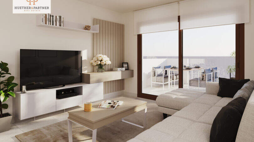 Helle Räume, große Fenster und Balkontüren sorgen für viel Tageslicht und verbinden Innen- und Außenbereiche nahtlos. Jede Einheit verfügt über einen eigenen Parkplatz (im Freien oder unterirdisch) sowie Zugang zu gemeinschaftlichen Einrichtungen wie Pool, Strandpool, Solarium, gepflegten Gärten und Fahrradabstellplätzen. Hier erleben Sie Mallorcas Klima und Natur in vollen Zügen.