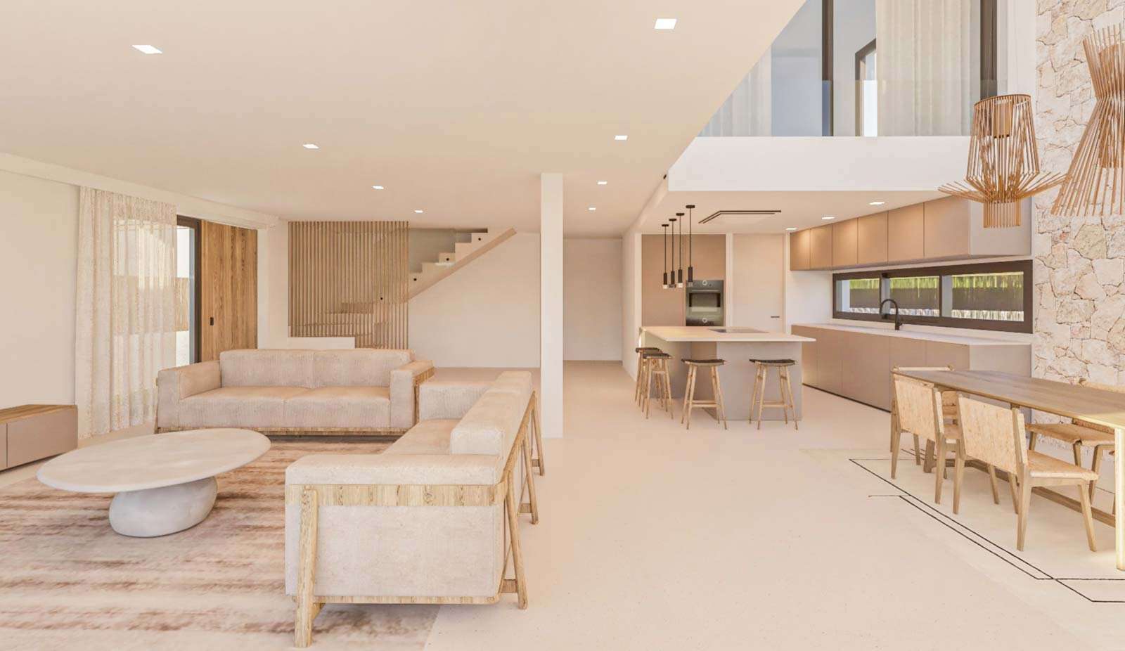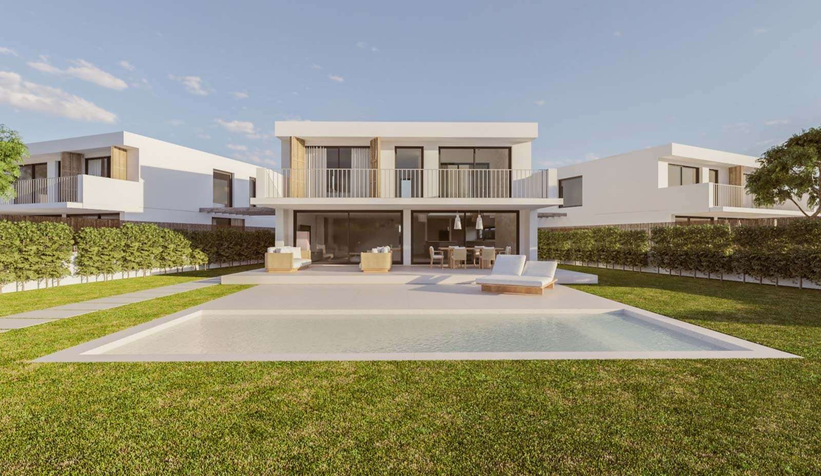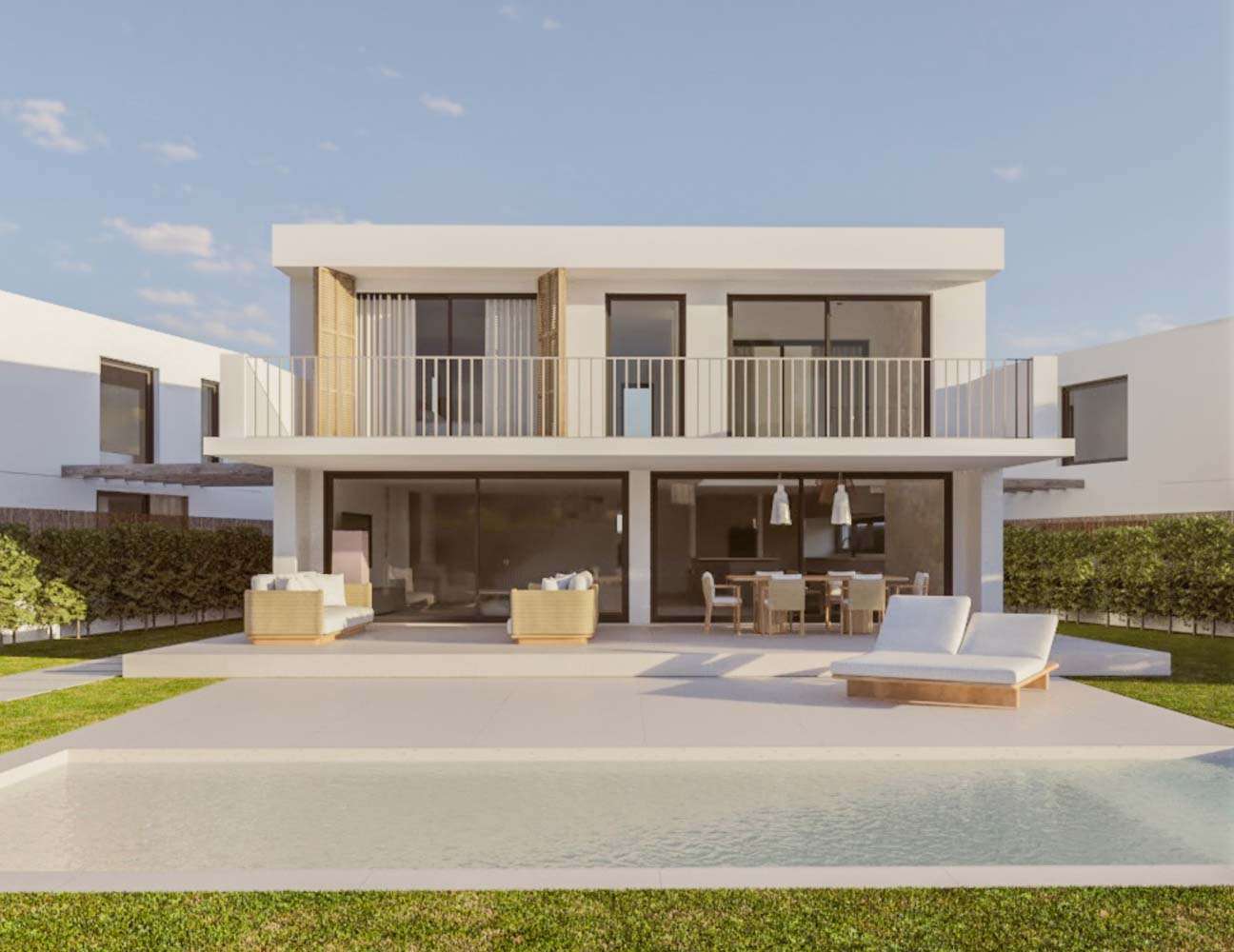 Das Projekt umfasst 247m² Wohnfläche, 1.000m² Terrassen und einen 25m² großen Pool. Die 247m² Wohnfläche verteilen sich auf zwei Etagen. Es gibt drei großzügige Schlafzimmer, alle eigenem Bad, ein helles Wohn-Esszimmer, eine voll ausgestattete Küche hochwertigen Geräten und eine Garage.