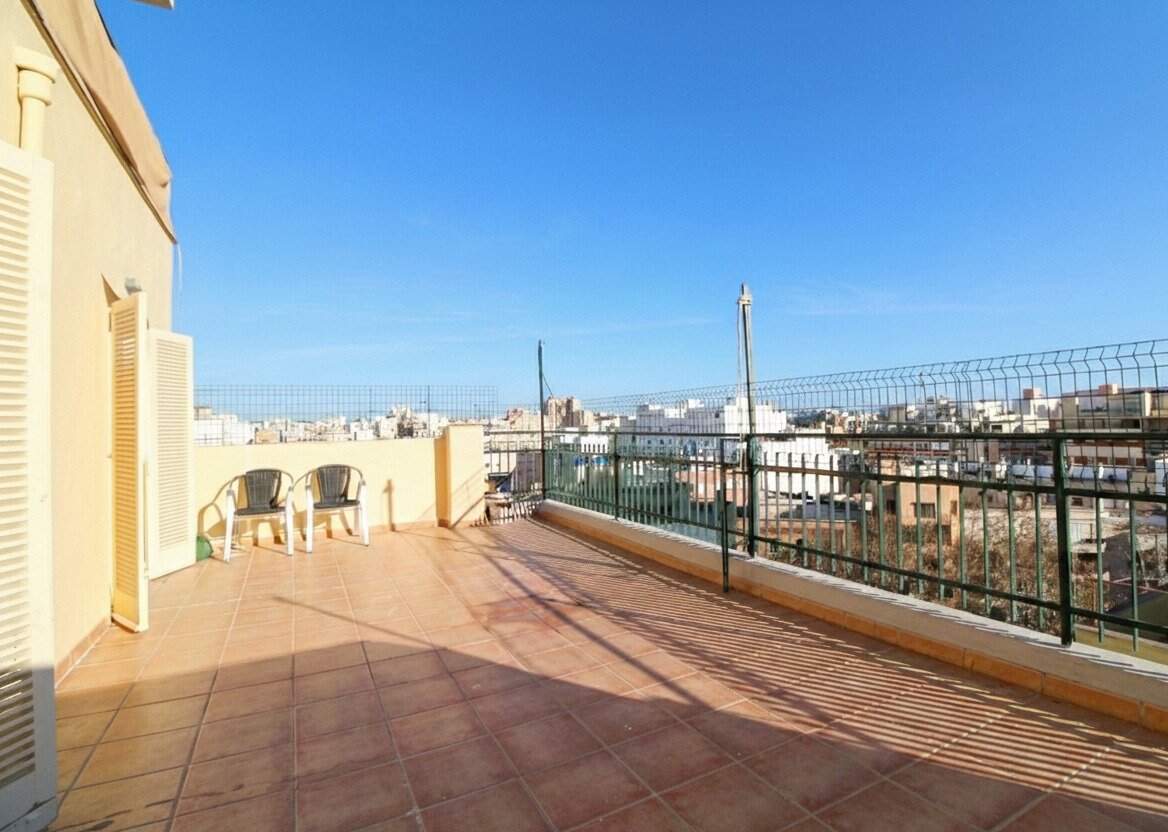 Die Gesamtfläche von ca. 108m² verteilt sich auf eine durchdacht gestaltete Wohnfläche von rund 58m² sowie auf zwei Terrassen mit insgesamt ca. 50m². Ein besonderes Highlight bildet die großzügige Hauptterrasse, von der aus sich ein eindrucksvoller Blick auf die Kathedrale von Palma sowie teilweise auf das Meer eröffnet – ein Panorama, das zu jeder Tageszeit begeistert.