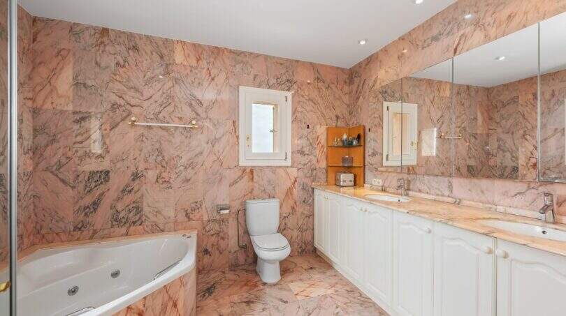 Die Wohnfläche (ca. 323m²) verfügt über 5 Schlafzimmer und 5 Badezimmer und teilt sich wie folgt auf: Erdgeschoss: großes Wohn-/Esszimmer, moderne Landhausküche, imposante Eingangshalle (Höhe 8m), 2 Schlafzimmer (jeweils mit Bad en suite und eigener Terrasse) und Gäste-WC. Obergeschoss: Master-Schlafzimmer und 2 weitere Schlafzimmer (alle mit Bad en suite, ein Bad mit Whirlpoolwanne) und Galerie (Bibliothek/Büro) sowie ein großer Hauswirtschaftsraum.