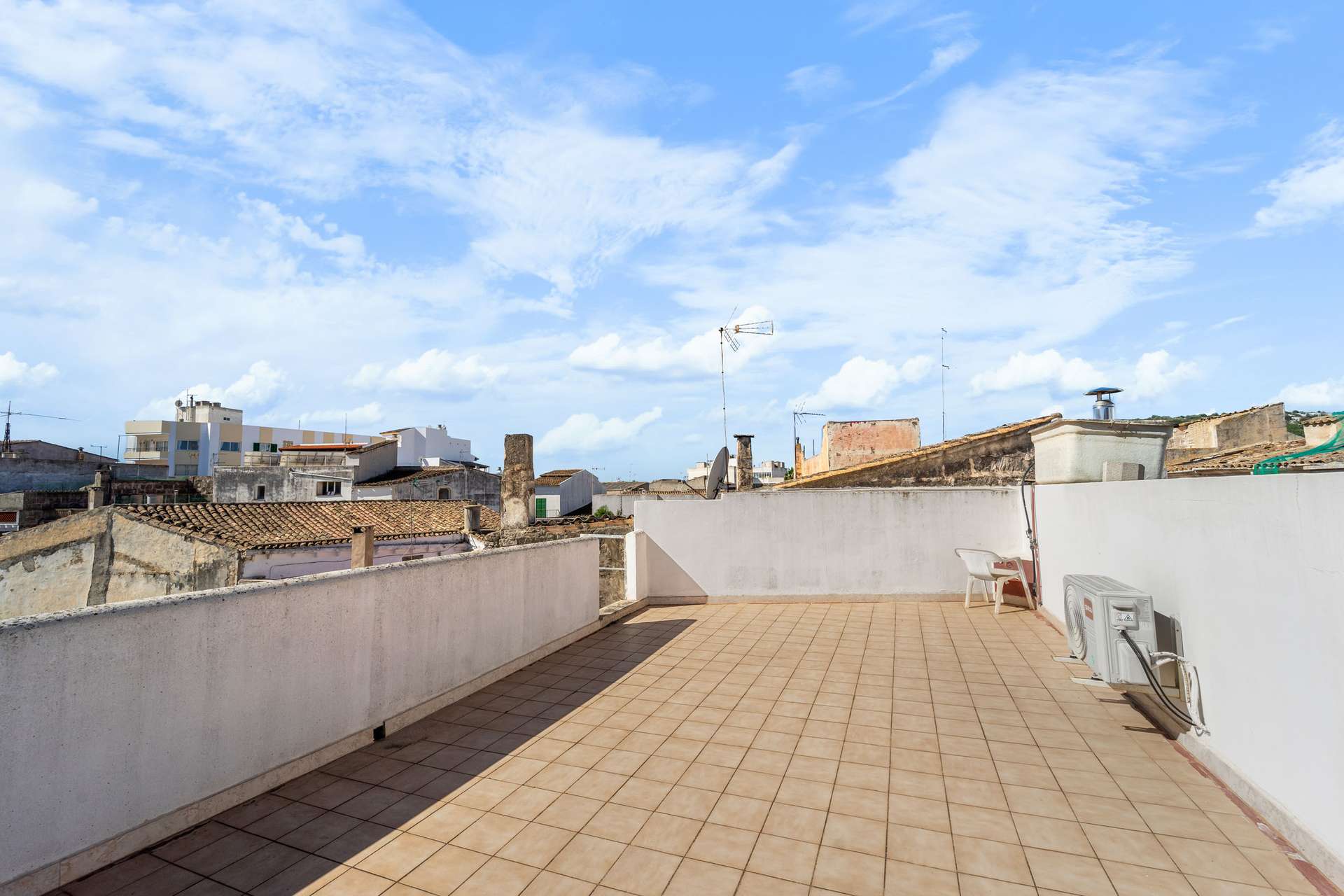Im ersten Stock gibt es einen großen offenen Raum, zwei Doppelschlafzimmer, ein Badezimmer und eine Terrasse, von der aus man Zugang zur Dachterrasse von ca. 40m² hat.