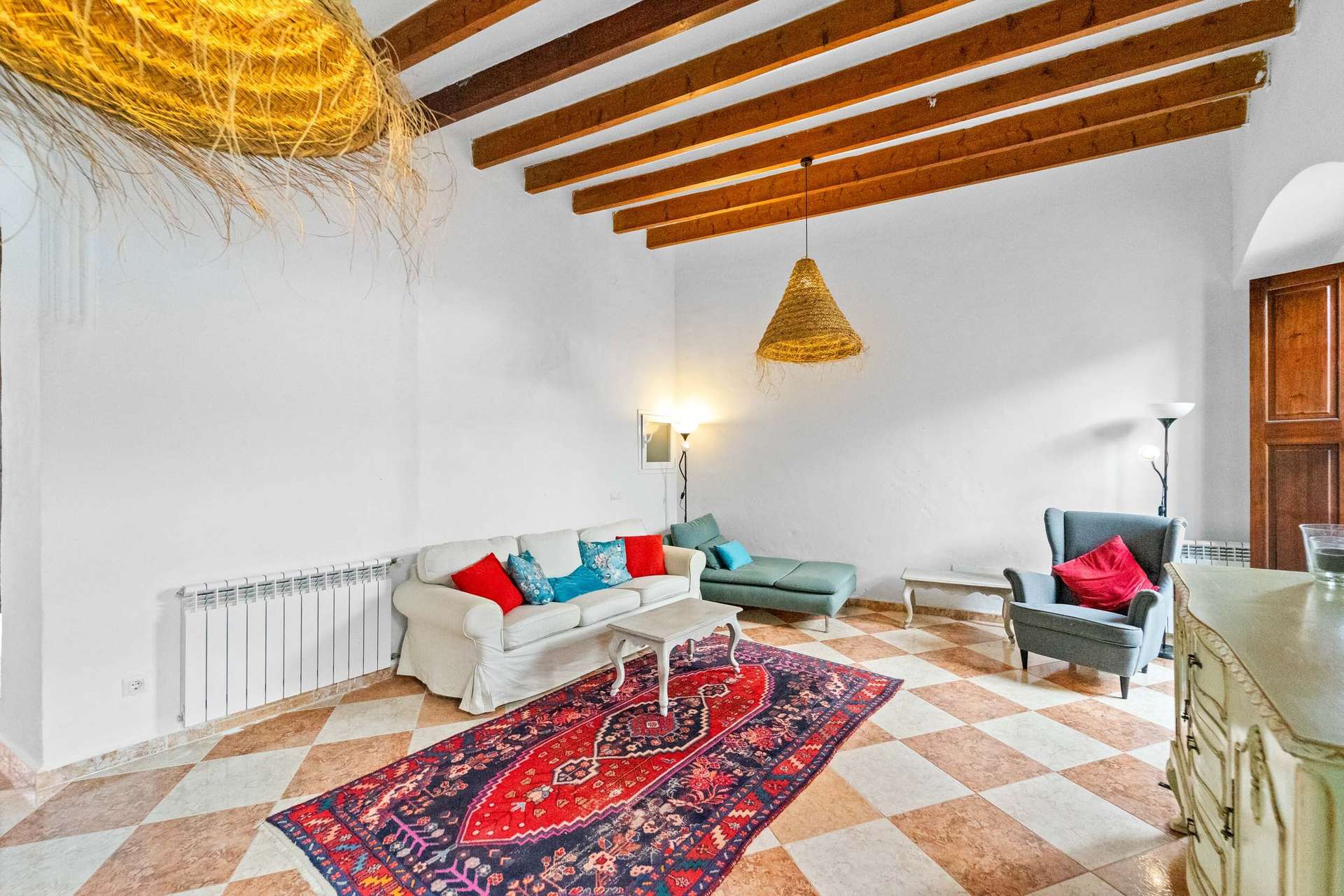 Die Immobilie wurde vor Kurzem renoviert, mit einer Kombination aus rustikalem und minimalistischem Stil. Das Anwesen behält den mallorquinischen Stil dank der hohen Decken mit freiliegenden Balken im Erdgeschoss, Original-Tischlerei und Dekoration.