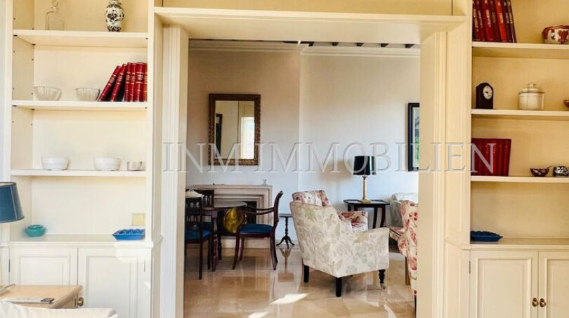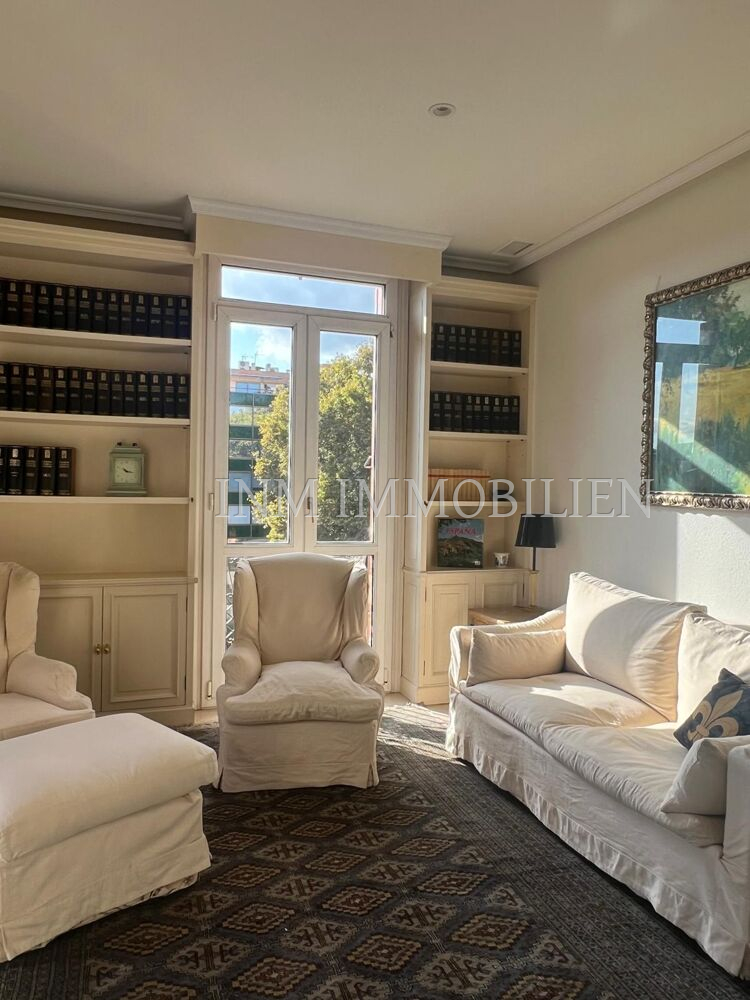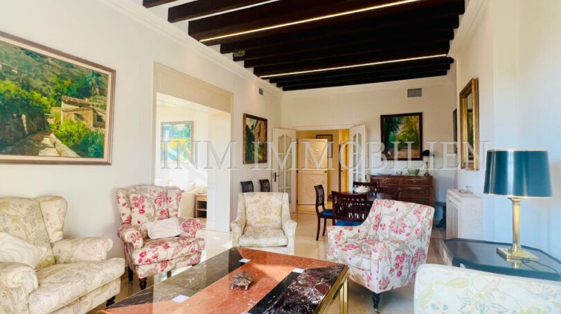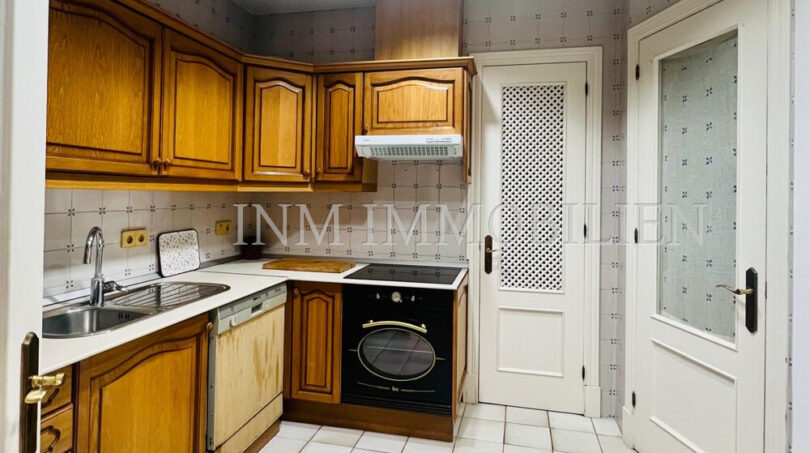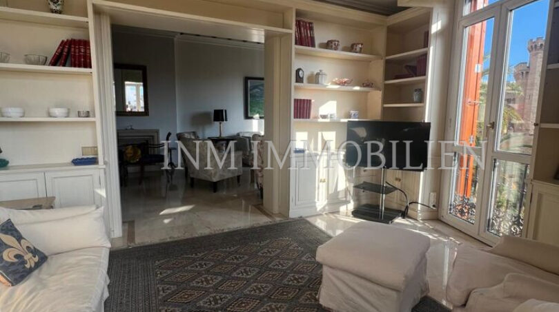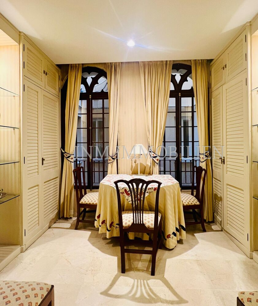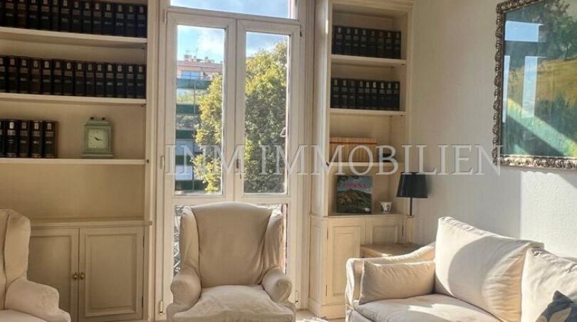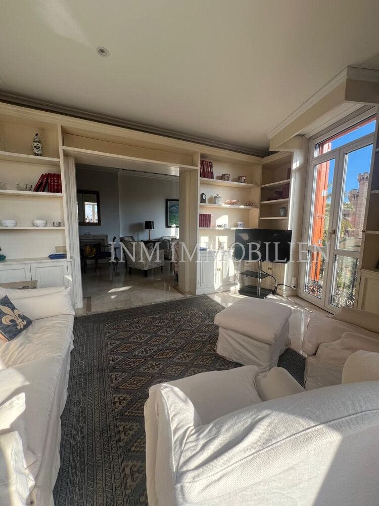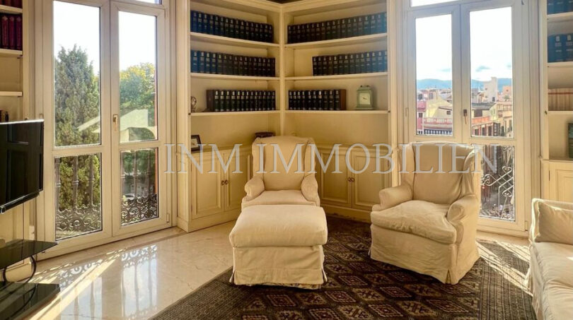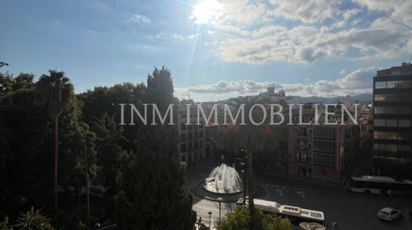Die Immobilie befindet sich in der dritten Etage eines gepflegten Gebäudes mit Aufzug. Die Wohnung bietet eine durchdachte Aufteilung mit drei Schlafzimmern und zwei Badezimmern, von denen eines en suite liegt. Der helle Wohn- und Essbereich ist mit einer gemütlichen Bibliothek bzw. TV-Ecke verbunden und schafft so eine offene, wohnliche Atmosphäre. Die separate Küche verfügt über einen praktischen Hauswirtschaftsraum, eine Speisekammer sowie einen Office-Bereich, der sich ideal als zusätzliches Arbeits- oder Gästezimmer nutzen lässt. Ein besonderer Pluspunkt ist der Balkon mit Blick auf die Plaza de la Reina, der dem Objekt eine exklusive Note verleiht.