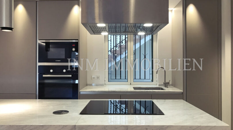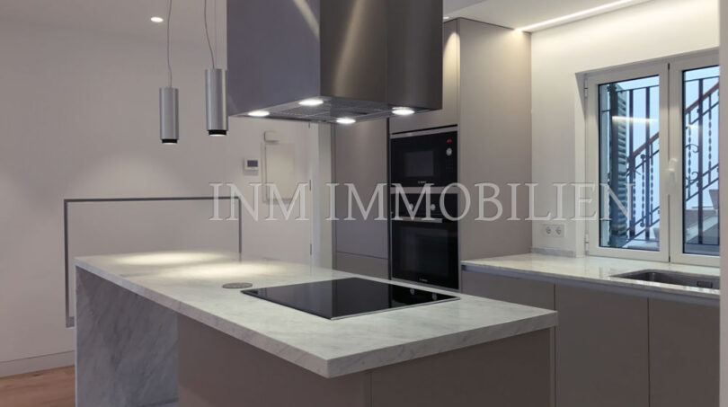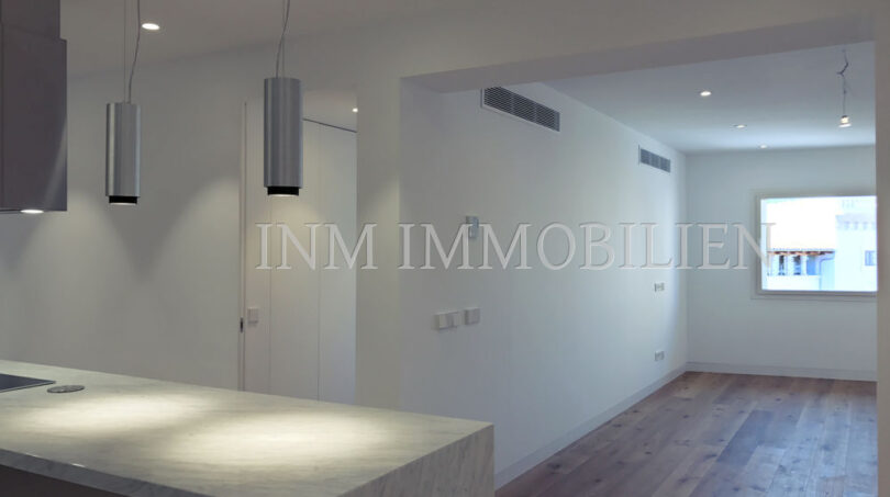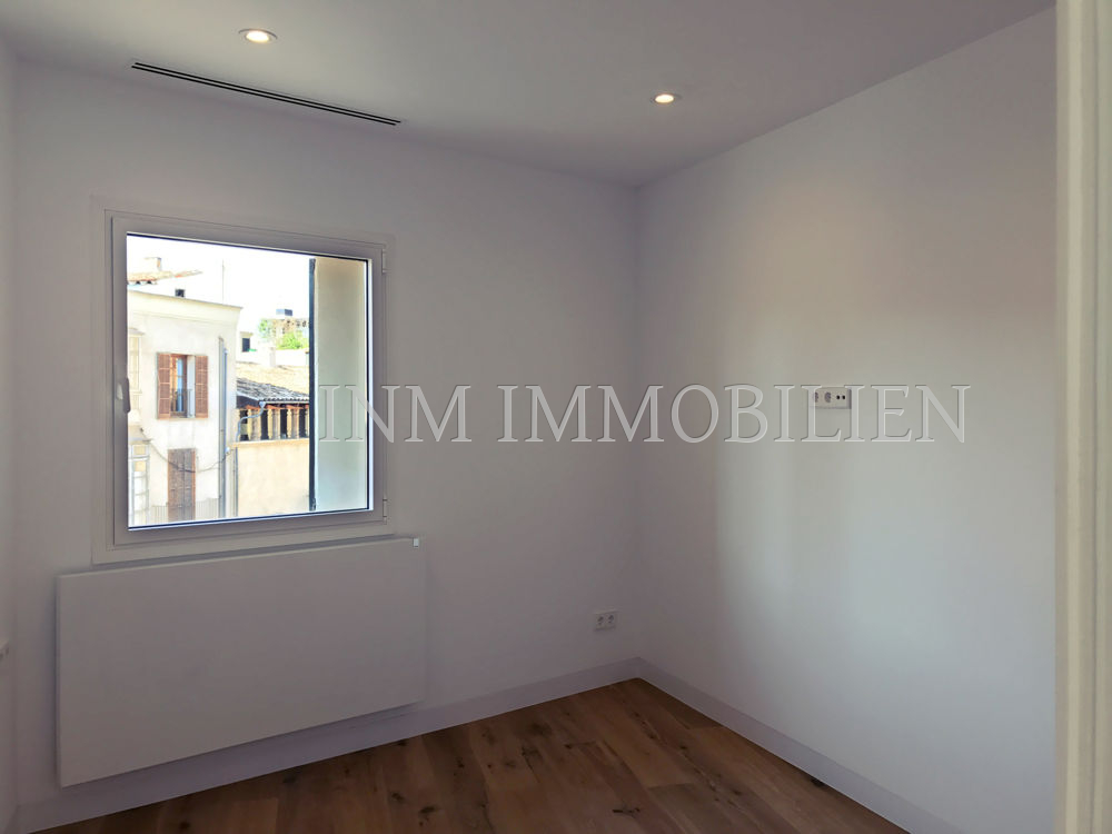 Das Penthouse wurde komplett mit hochwertigen Materialien und einem modernen Touch renoviert. Es umfasst doppelt isolierte Wände und Schallschutz, Eichenböden, eine italienische Küche der Marke DOMIO mit Carrara-Marmorböden und Arbeitsplatte, BOSCH-Geräte und FLOS-Beleuchtung. Es hat auch eine Zentralheizung mit unsichtbaren Heizkörpern der neuesten Generation und eine Kältepumpe, beide domotisiert. Die Wohnung verfügt über ein Hauptschlafzimmer mit einem eigenen Carrara-Marmorbad, ein zweites Schlafzimmer mit einem Ankleidezimmer und einem zweiten Mikrozement-Badezimmer sowie ein drittes kleineres Schlafzimmer. Über der Wohnung befindet sich eine Gemeinschaftsterrasse mit herrlichem Blick auf die gesamte Altstadt bis zur Kathedrale von Palma.